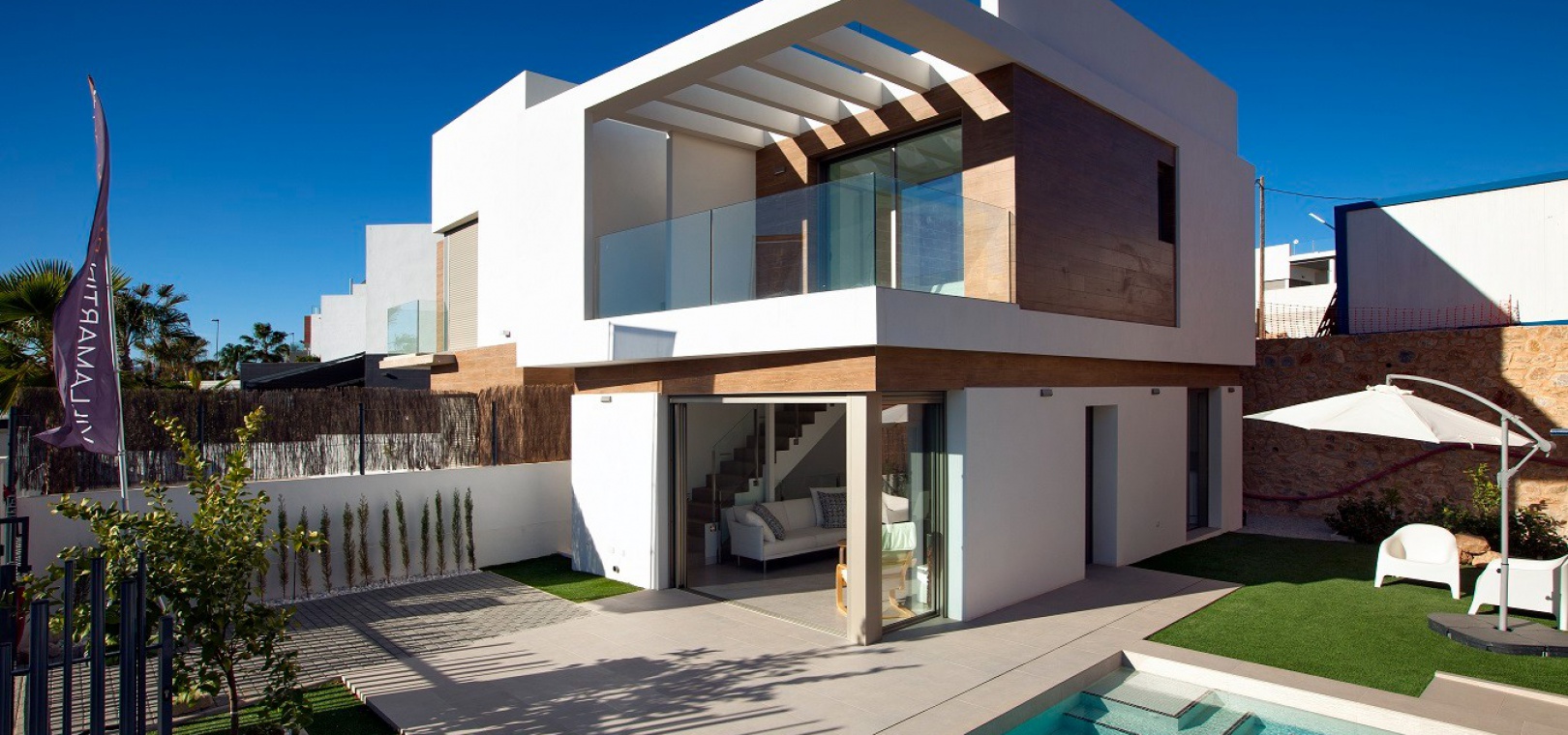 Villamartin Paradise ist eine hervorragende Anlage mit modernen, neuen, freistehenden Villen mit 3 Schlafzimmern, 3 Bädern und privatem Pool. Sie befinden sich im Bau und liegen im Viertel Pau 8 von Villamartin, einem ruhigen Wohngebiet mit Blick auf einen Park mit Palmen und nur einen kurzen Spaziergang von der Villamartin Plaza entfernt, wo es zahlreiche Annehmlichkeiten wie Banken, einen Supermarkt, eine Apotheke, Geschäfte und eine große Auswahl an Bars und Restaurants gibt.