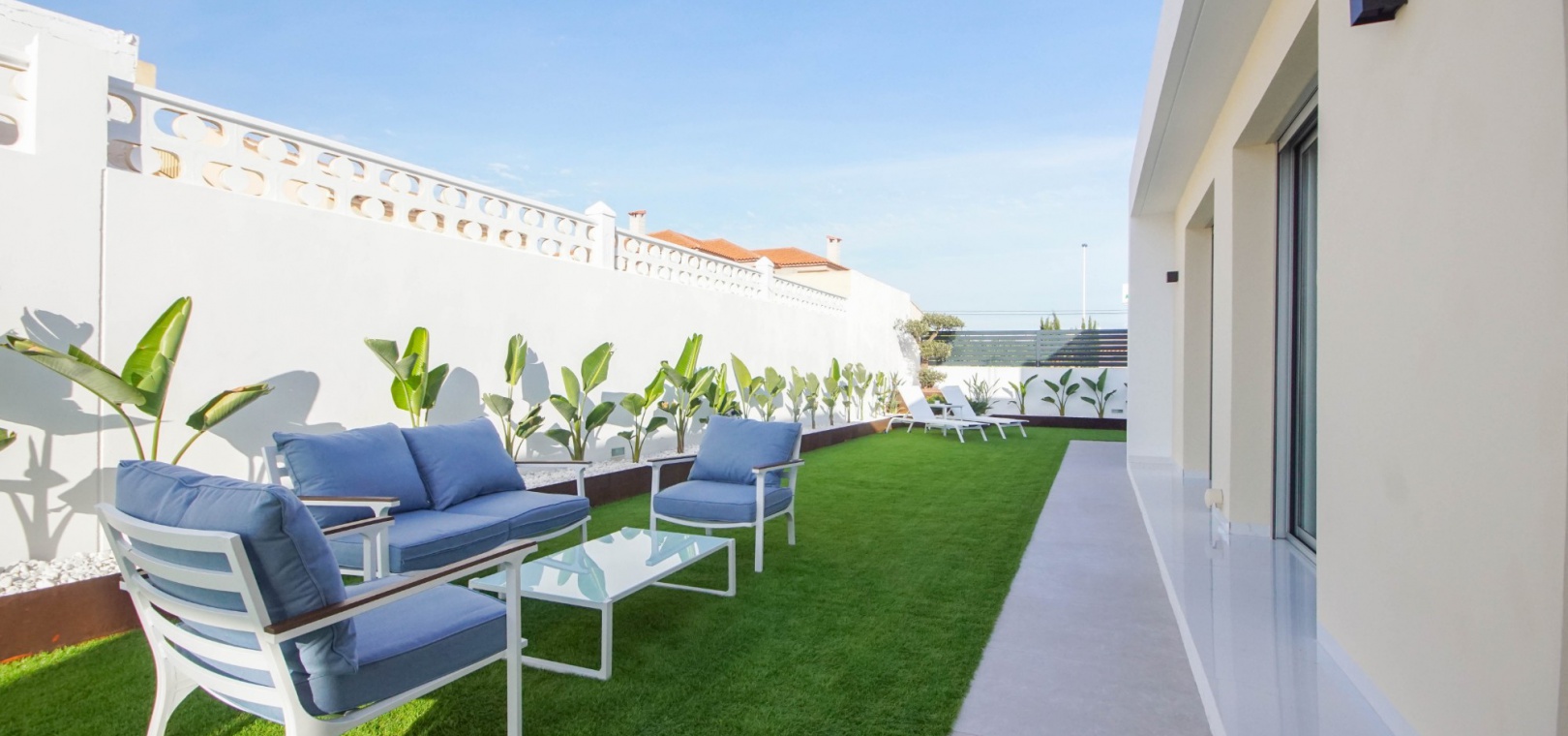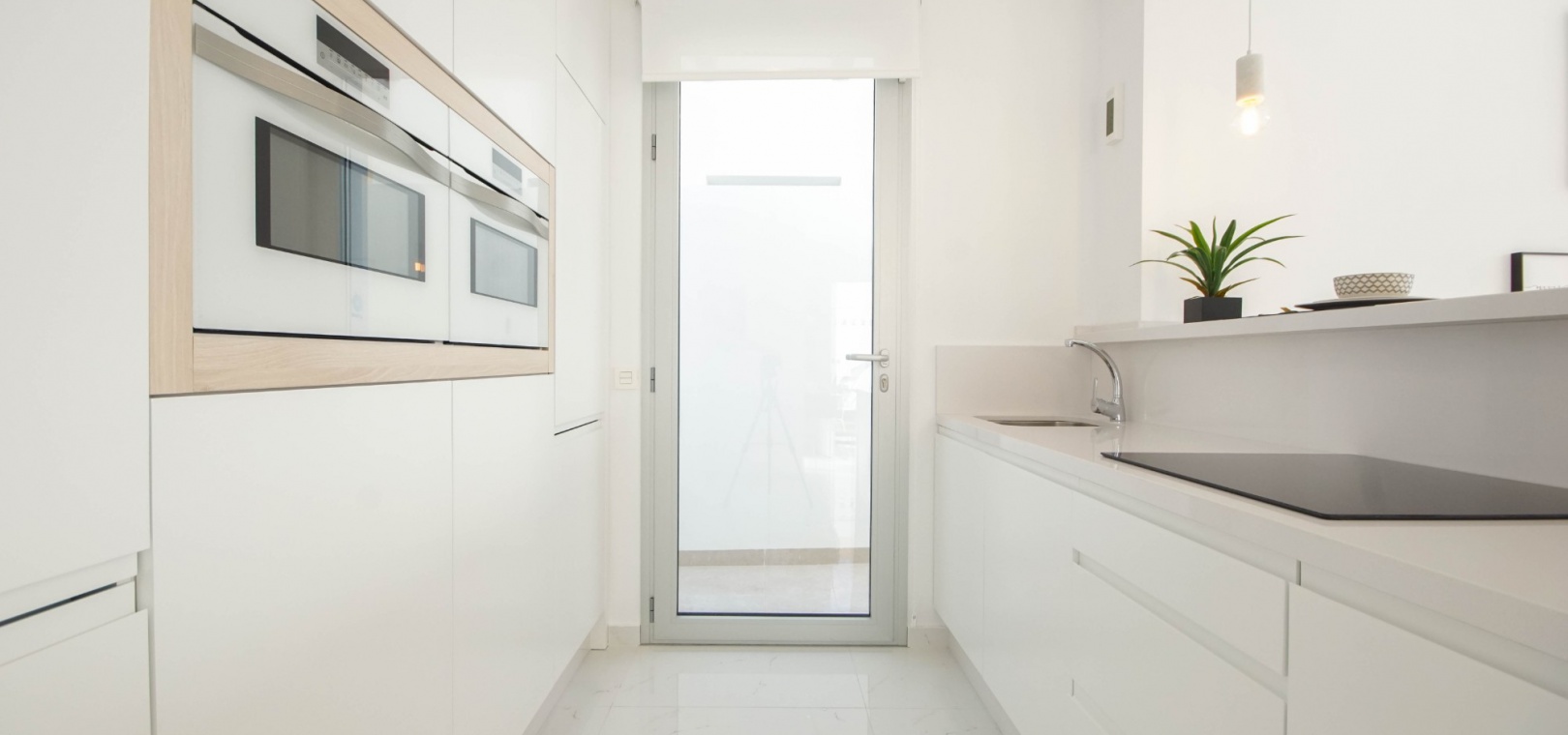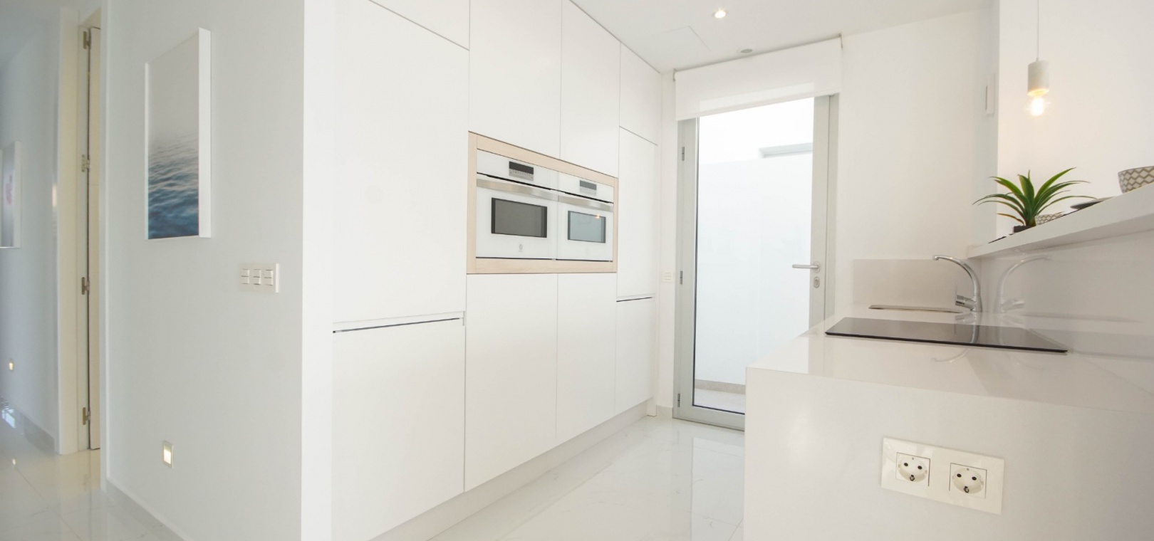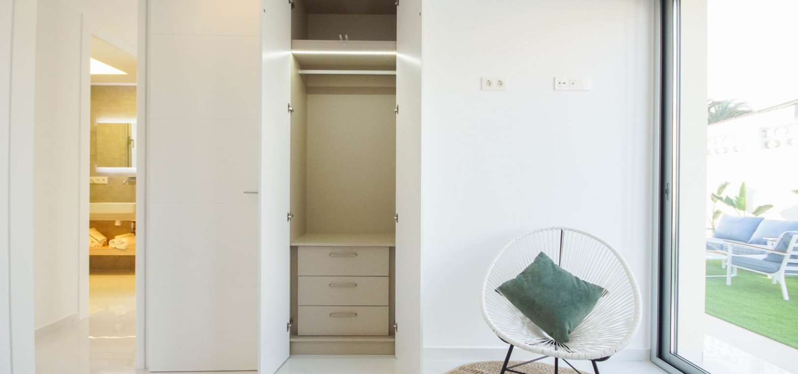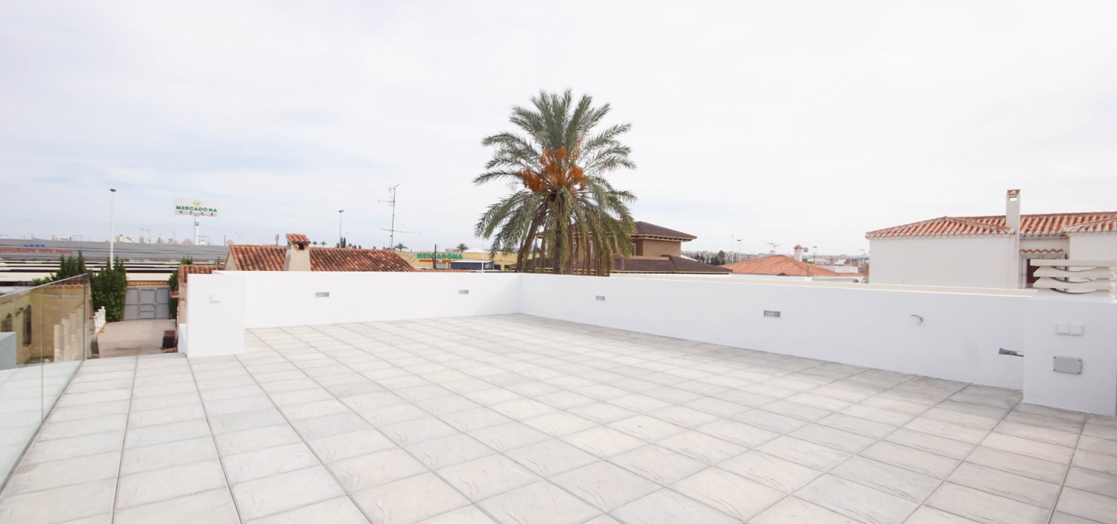 Das Anwesen ist auf einer Ebene gebaut und besteht aus einem offenen Wohnbereich mit Terrassentüren, die in den Garten mit privatem Pool führen, einer modernen Einbauküche mit Einbaugeräten wie Backofen, Herd, Dunstabzugshaube, Kühl-/Gefrierschrank und Waschmaschine , Geschirrspüler und Mikrowelle, ein Hauptschlafzimmer mit begehbarem Kleiderschrank und eigenem Bad, zwei weitere Doppelschlafzimmer mit Einbauschränken und ein voll ausgestattetes Badezimmer. Eine hintere Treppe führt hinauf zu einer privaten Dachterrasse, wo Sie den ganzen Tag über eine herrliche Aussicht und Sonne genießen können.