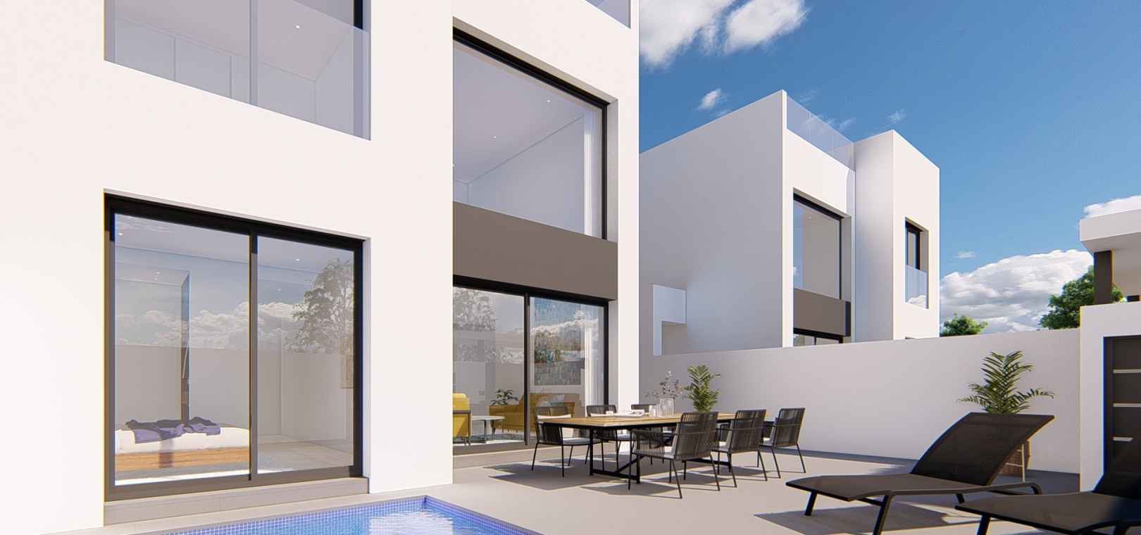 Diese luxuriöse Villa wurde nach den höchsten Standards gebaut und verfügt über einen privaten Pool, eine moderne Küche mit Einbaugeräten, LED-Beleuchtung, voll ausgestattete Badezimmer, ein elektrisches Autotor und elektrische Rollläden.