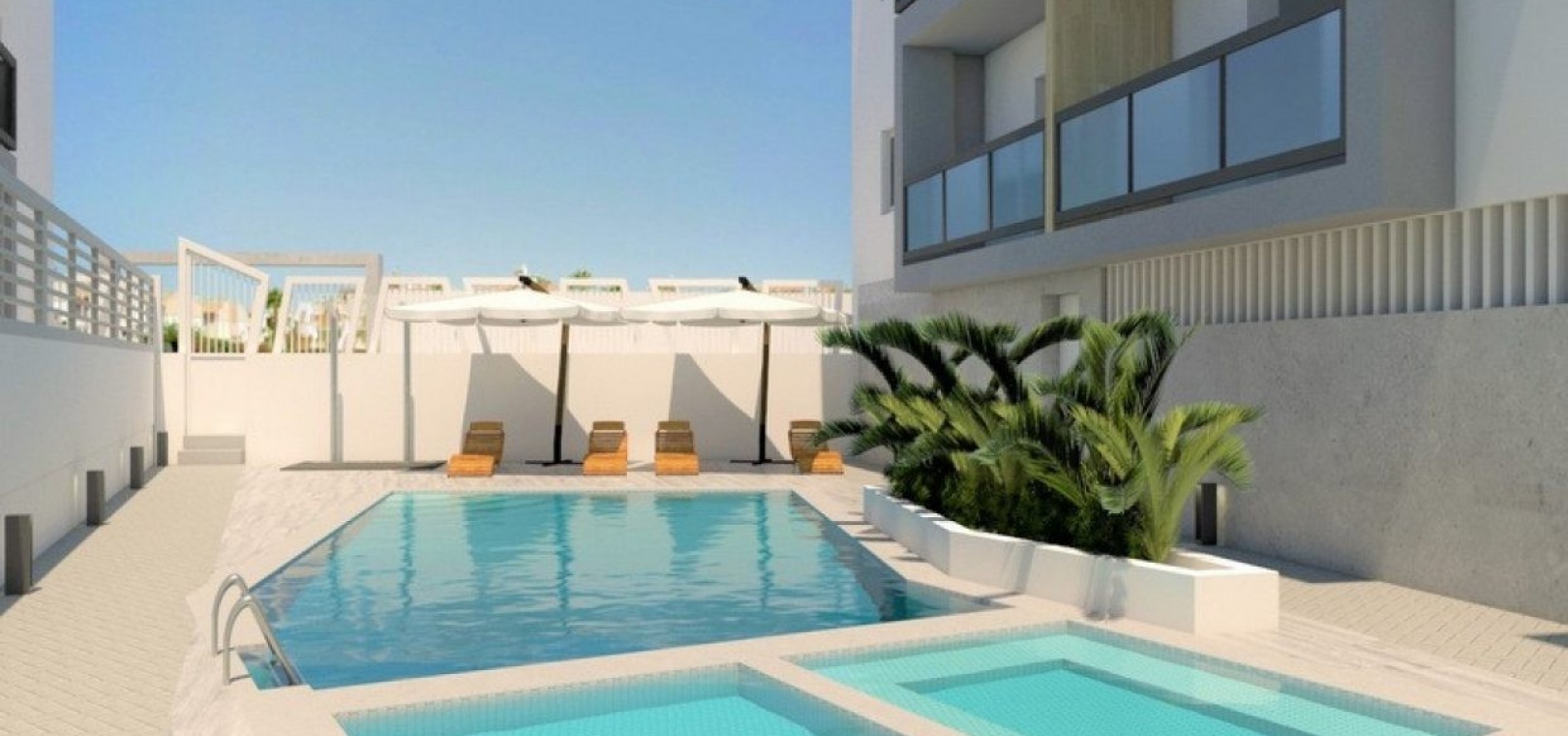 Es gibt Erdgeschosswohnungen mit privater Terrasse, Penthouses mit Solarium auf dem Dach und luxuriöse freistehende Villen mit privatem Pool. Es gibt schöne Gemeinschaftsgärten mit Swimmingpool und eine sichere Tiefgarage ist ebenfalls im Preis inbegriffen.