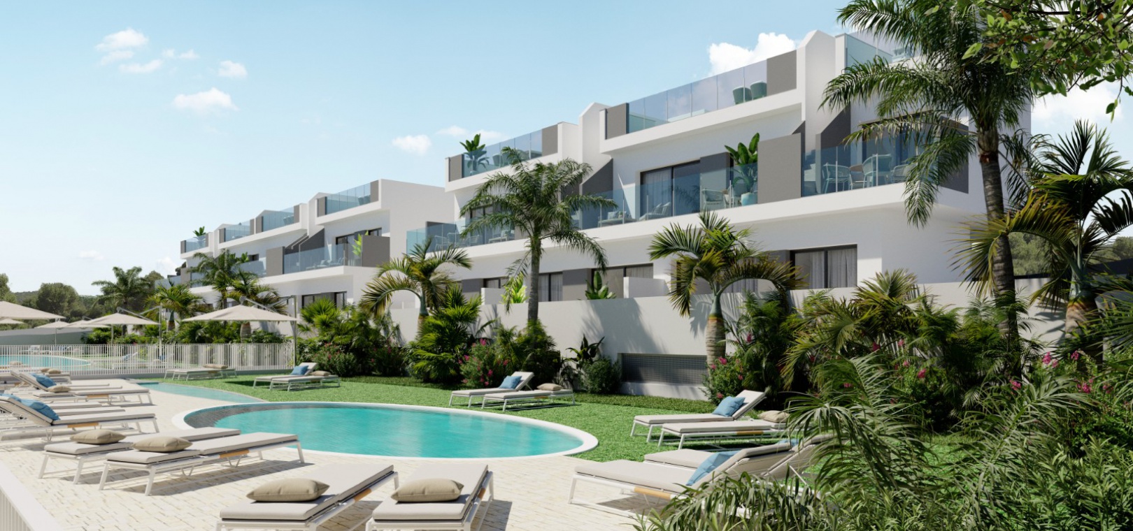 Das Nature Views Resort ist eine luxuriöse, moderne Anlage in Los Balcones mit Blick auf den rosafarbenen Salzsee von Torrevieja. Diese sichere Wohnanlage besteht aus 84 Immobilien, darunter Villen mit privatem Pool und Luxusimmobilien mit Unterbau oder Solarium auf dem Dach.