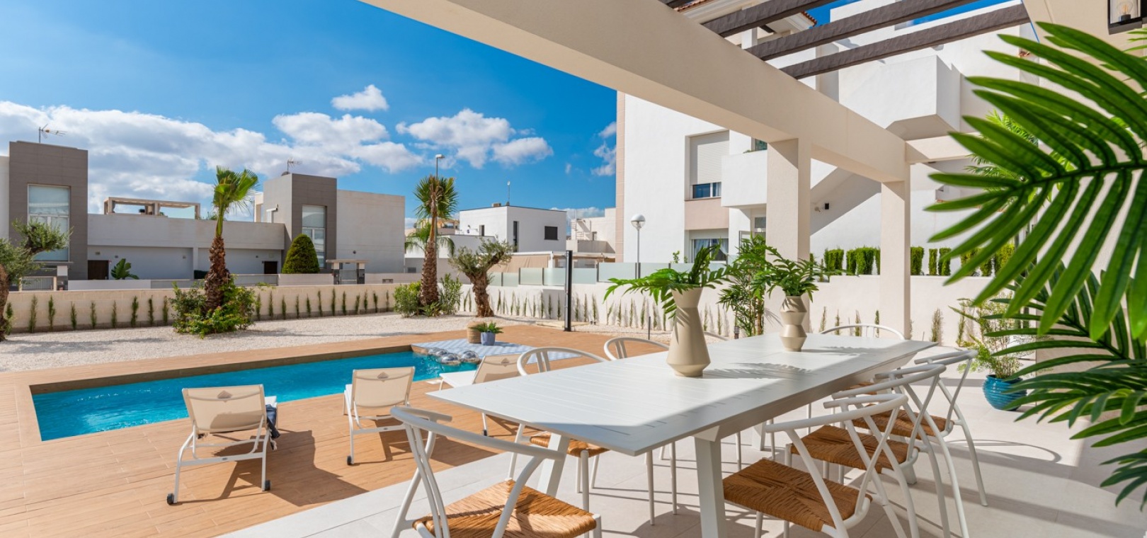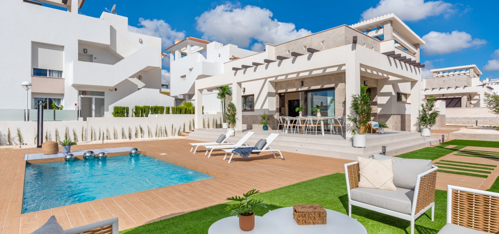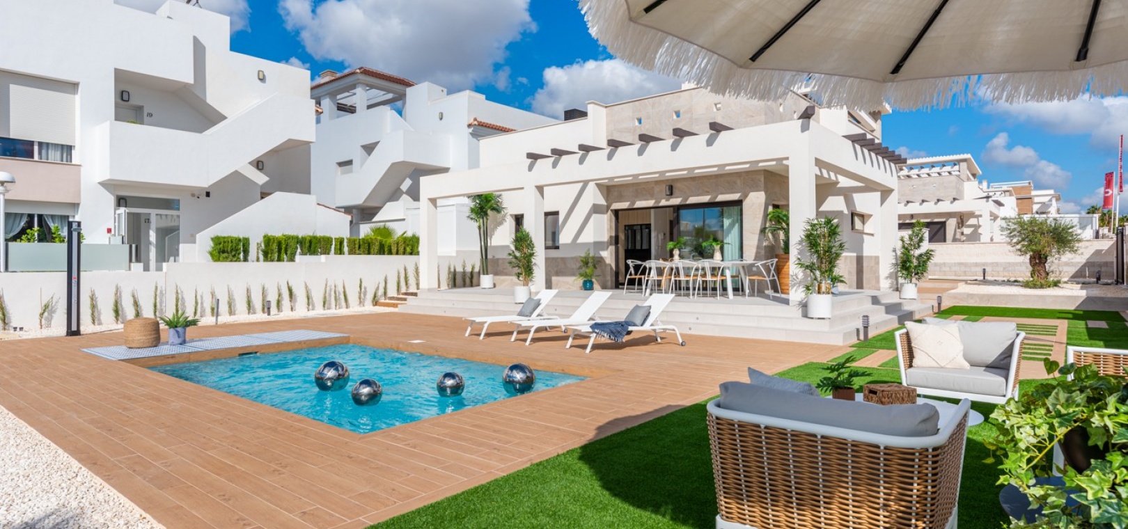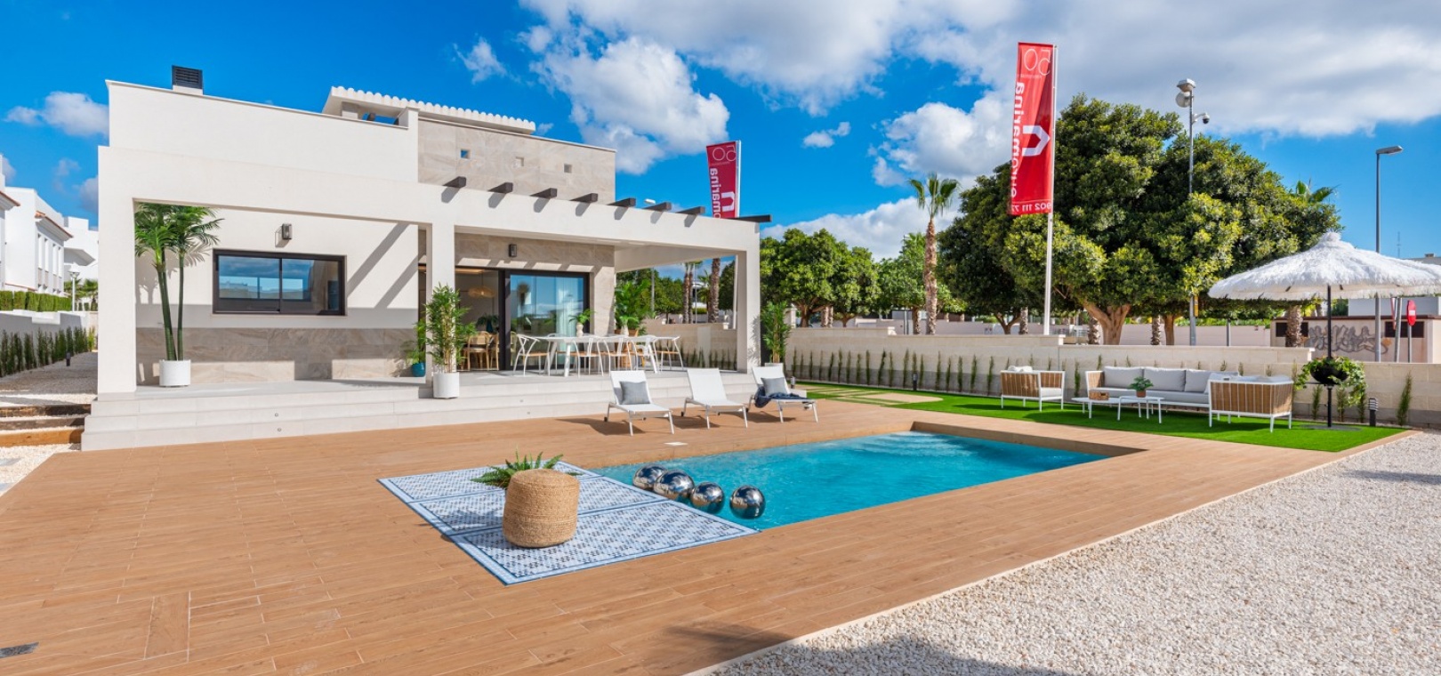 Diese schlüsselfertige Villa ist nach höchsten Standards gebaut und verfügt über einen privaten Pool, alle Küchengeräte, Fußbodenheizung in den Badezimmern und eine riesige Dachterrasse.