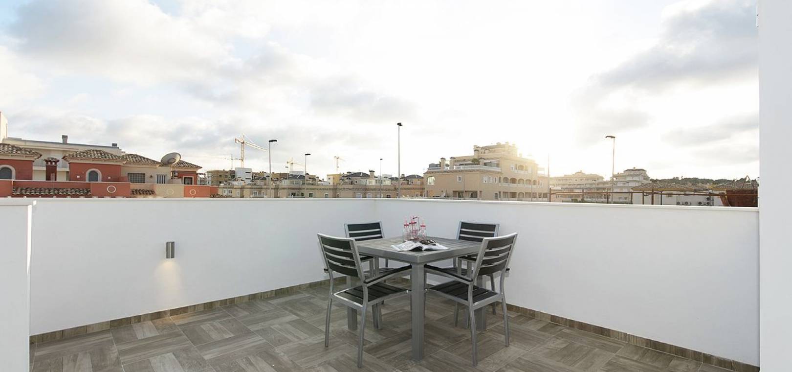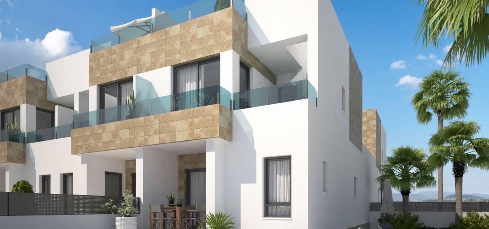 Diese neu gebauten modernen Stadthäuser in Villamartin bieten 3 Schlafzimmer, 3 Badezimmer, ein offenes Erdgeschoss des Wohnzimmers mit Essbereich, eine offene Einbauküche mit hinterer Terrasse, ein Gästebad und ein Zweibettzimmer mit Einbauschränken sowie Terrassentüren mit Blick auf die sonnigen Gärten und Terrasse, eine Treppe von der Lounge führt in den ersten Stock mit einem Hauptschlafzimmer und en-suite, ein zweites Doppelzimmer ebenfalls en-suite, Terrassentüren führen auf eine private Sonnenterrasse. Eine weitere Treppe führt zu einem privaten Solarium auf dem Dach, um die ganztägige Sonne zu genießen. Das Anwesen ist vorinstalliert für die Klimaanlage sowohl heiß als auch kalt, Licht innen und außen, Duschwände und ein Parkplatz ist im Preis inbegriffen. Es gibt etablierte Gemeinschaftsgärten mit einem beheizten Pool ......... Don Die brandneuen Stadthäuser von Benito befinden sich in einer großartigen Lage, nur wenige Gehminuten vom Villamartin Plaza entfernt, wo es eine große Auswahl an Restaurants, Bars und Geschäften gibt. Die wunderschönen mit der Blauen Flagge ausgezeichneten Strände von Orihuela Costa sind nur eine kurze Autofahrt entfernt, ebenso wie der berühmte Einkaufskomplex Zenia Boulevard. Die Flughäfen von Alicante und Murcia sind nur 40 Minuten bzw. 25 Minuten mit dem Auto entfernt