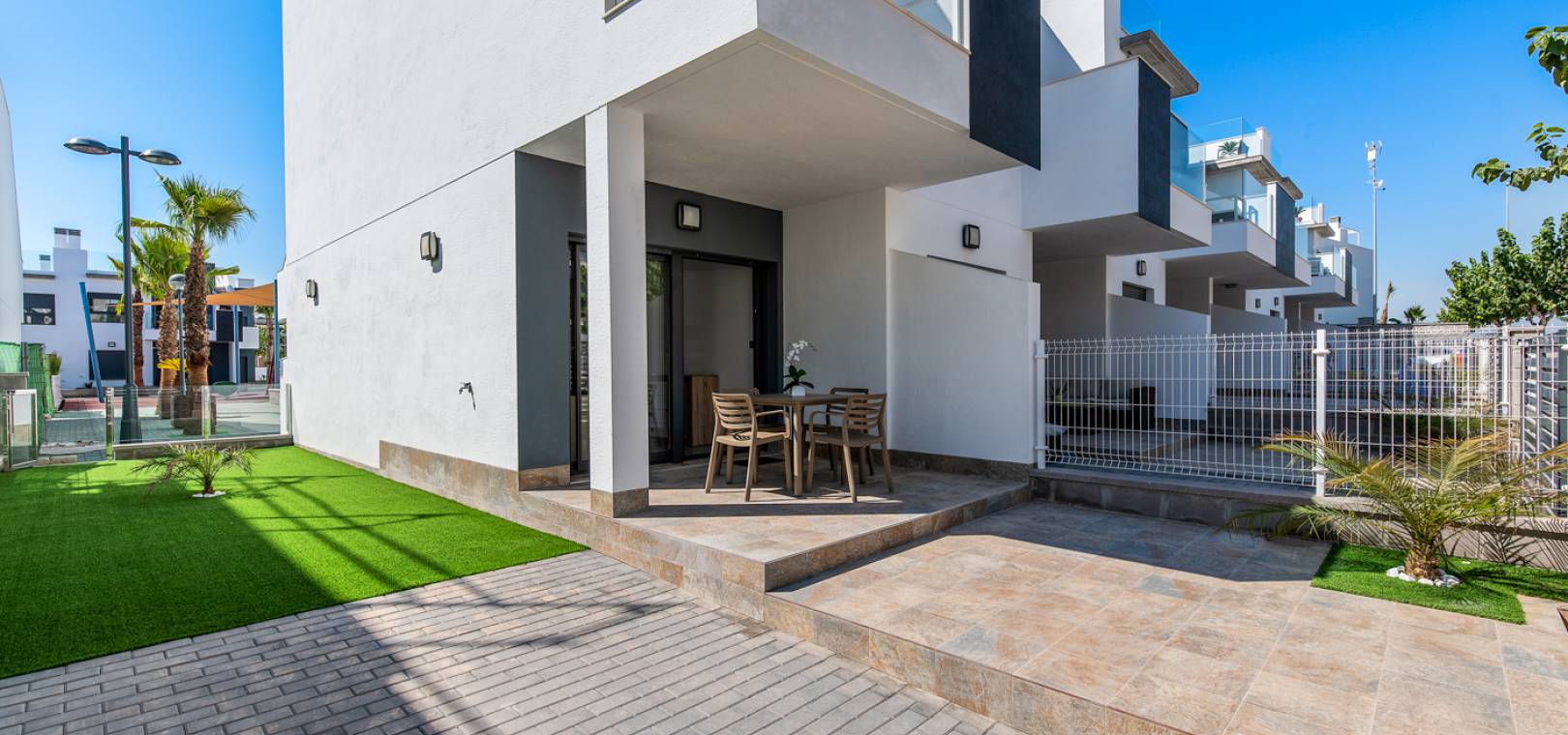 New Spanish Properties freut sich, diese Apartments in Pilar De La Horadada zum Verkauf anbieten zu können. Wir finden, dass die Apartments perfekt als Ferienhäuser oder als Investition mit großem Vermietungspotenzial mit Preisen ab nur 59.900 € (für Erdgeschoss) geeignet sind. Die brandneuen Apartments sind Teil eines geschlossenen Komplexes mit Gemeinschaftspool, Garten und Parkplatz. Die Eigenschaften umfassen eine offene Lounge und Küche, ein Badezimmer und eine Terrasse. Die Apartments im Erdgeschoss verfügen über einen privaten Garten. Die Apartments im obersten Stockwerk verfügen über ein privates Solarium. Die Apartments befinden sich in unmittelbarer Nähe lokaler Annehmlichkeiten wie Supermärkten, Schulen und der Strand ist nur 5 Autominuten entfernt.