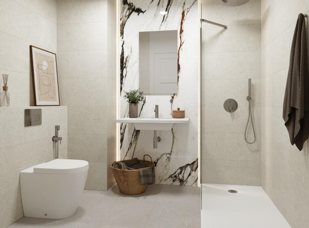 Dieses einzigartige Projekt umfasst 28 Luxuswohnungen, die durch 35 private Garagen und 30 Abstellräume ergänzt werden, alle auf einem großzügigen Grundstück von 4.000 m². Die niedrige Bebauungsdichte sorgt für weitläufige Gemeinschaftsbereiche, einschließlich angelegter Gärten und eines Gemeinschaftspools. Jede Wohnung zeichnet sich durch eine außergewöhnliche Bauqualität aus, die von Porcelanosa Grupo geliefert wird, einem vertrauenswürdigen Namen mit 50 Jahren Erfahrung im Bereich hochwertiger Wohnprojekte.