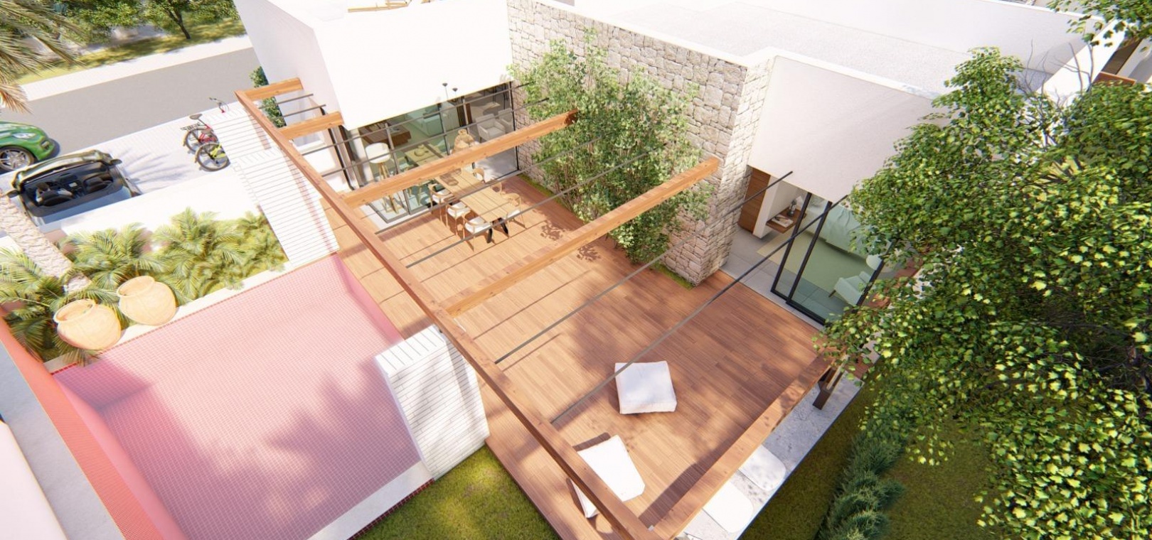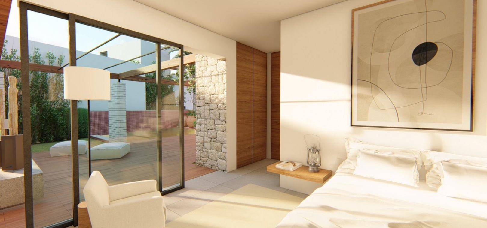 Diese modernen Häuser verbinden ein elegantes Innendesign mit einem mediterran inspirierten Äußeren mit Naturstein- und Holzelementen. Das Ergebnis ist eine perfekte Mischung aus Stil, Qualität und Komfort in einer ruhigen und dennoch gut angebundenen Umgebung.