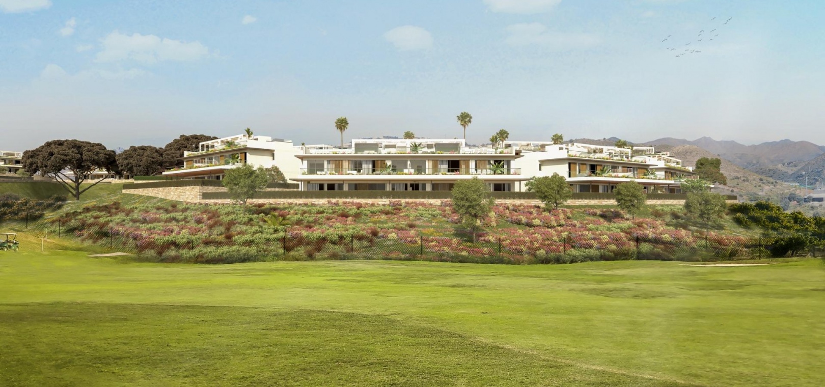 Gated Frontline Golf Entwicklung, auf sanften Hügeln in den Außenbezirken von Marbella. Wohnungen mit 3 und 4 Schlafzimmern mit großen Fenstern, Wohnzimmer und Küche sind in einem offenen Raum integriert, der es Ihnen ermöglicht, das natürliche Licht zu jeder Tageszeit zu nutzen. Die Terrasse wurde so angelegt, dass Sie die Natur und das Meer in Ihre schönsten Momente integrieren können. Ausgedehnte Grünflächen unter hundertjährigen Pinien, Spa und Fitnessraum und 2 große Swimmingpools mit Sonnenterrasse, um die unzähligen Sonnenstunden zu genießen, die Südspanien zu bieten hat.
