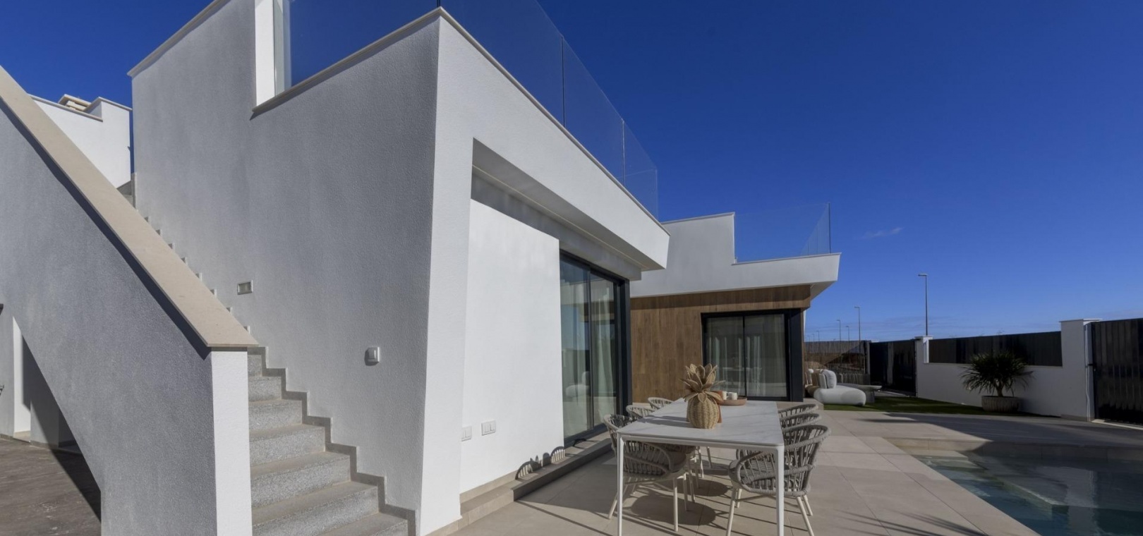 Jede Villa steht auf einem privaten Grundstück ab 300 m² und bietet reichlich Platz im Freien, um das ganze Jahr über die Sonne zu genießen. Zu den Immobilien gehören ein privater Swimmingpool, landschaftlich gestaltete Gartenbereiche und Parkplätze auf dem Grundstück.