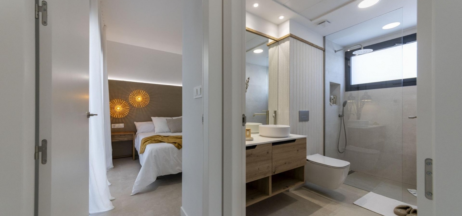 Diese neu gebauten Villen sind darauf ausgelegt, Komfort, Privatsphäre und einen entspannten mediterranen Lebensstil zu bieten. Die Anlage umfasst eine Auswahl an Villen auf einer Ebene mit optionalem Solarium oder auf zwei Ebenen, die alle über drei Schlafzimmer und zwei Badezimmer verfügen, darunter ein Hauptschlafzimmer mit eigenem Bad.