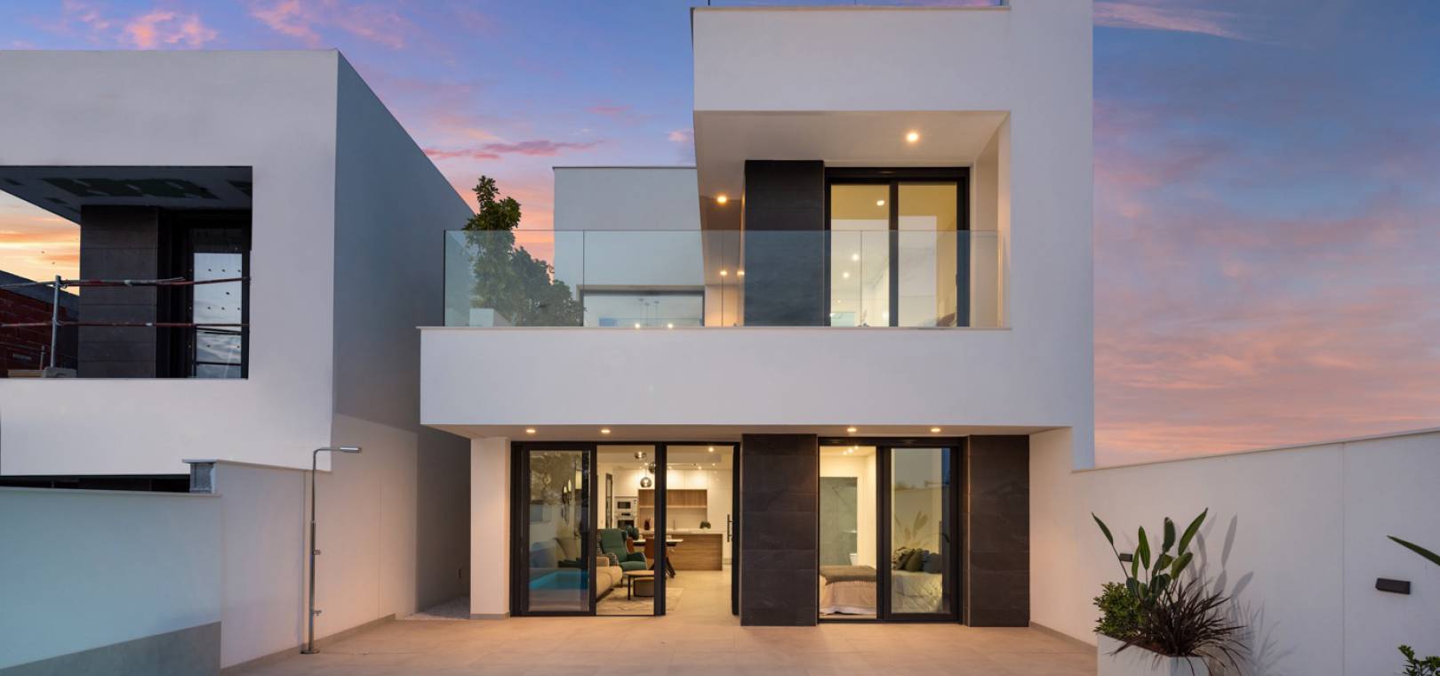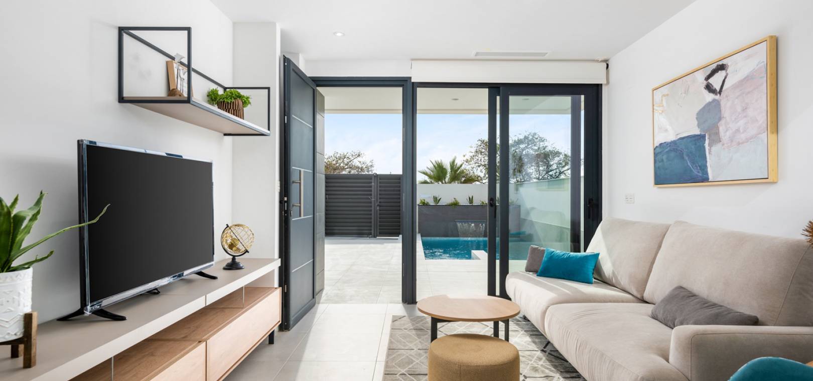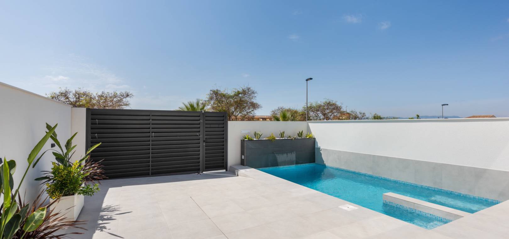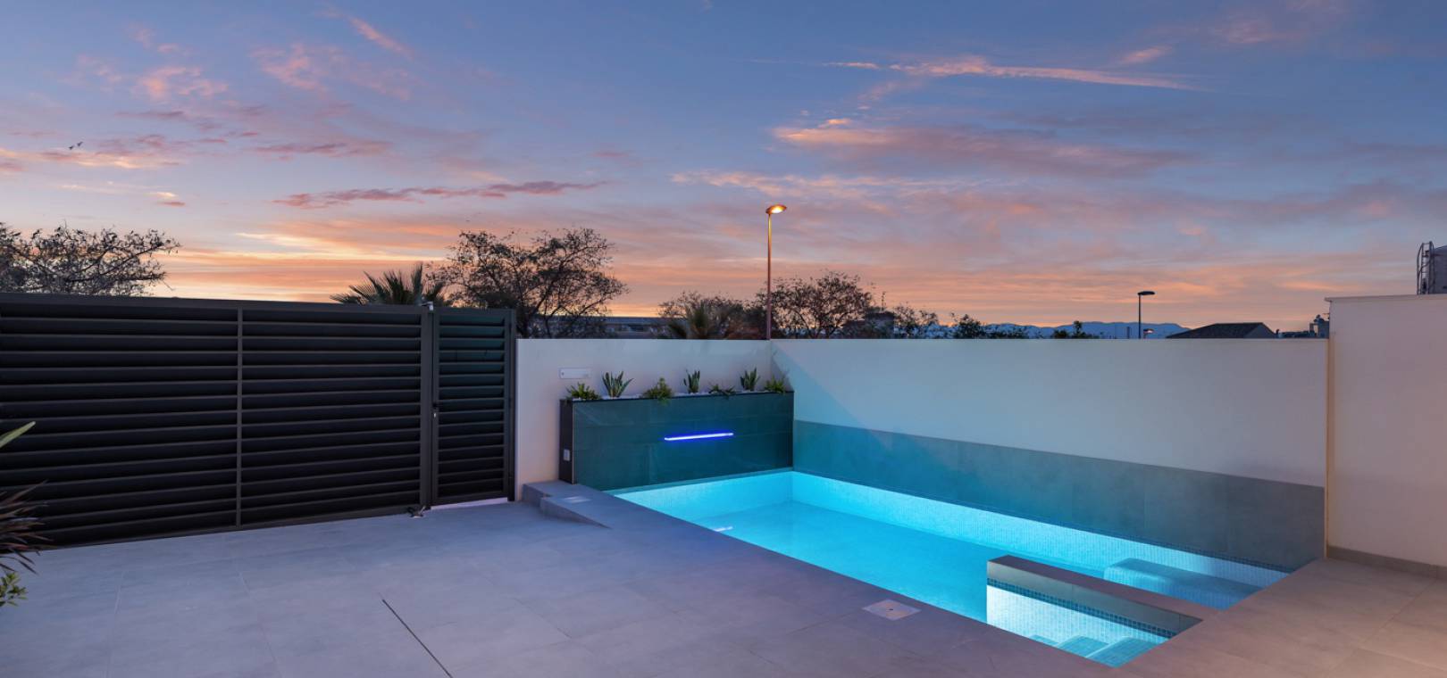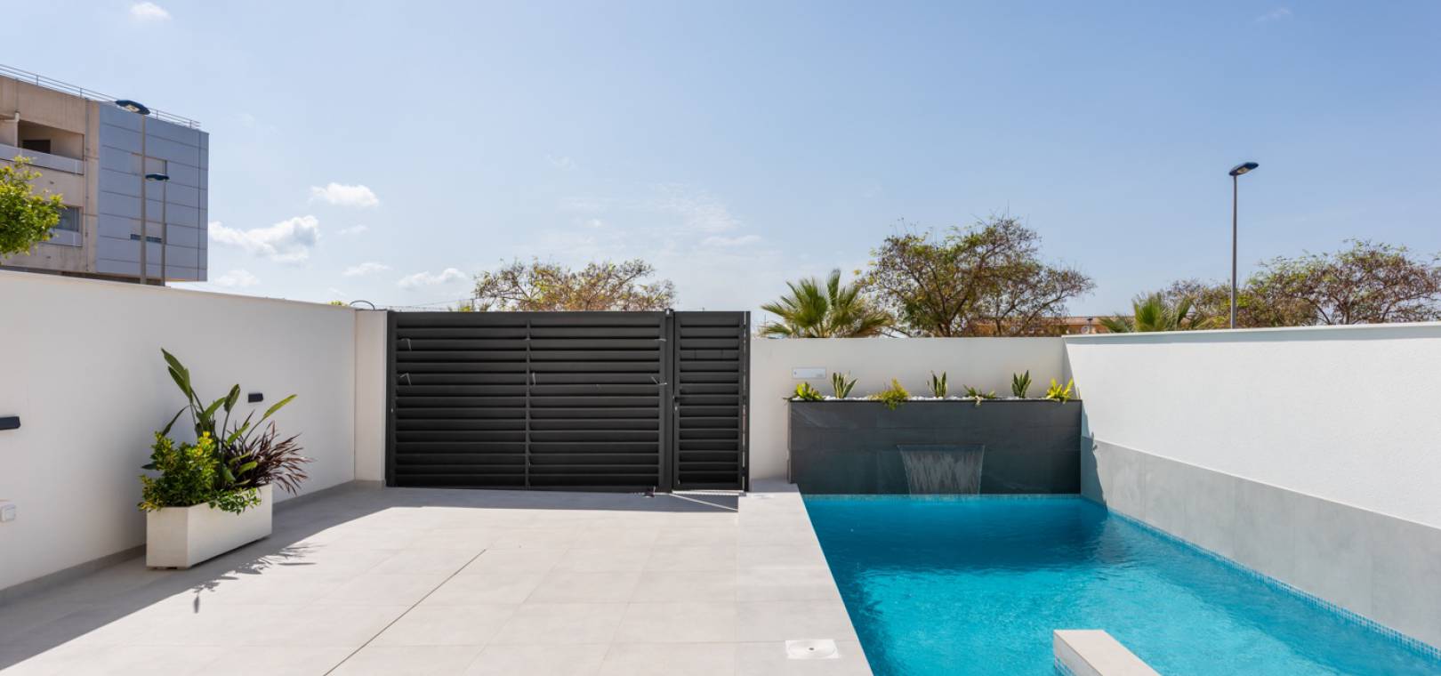 Residencial Venecia à Benijofar est un développement de villas individuelles de 3 chambres et 2 salles de bains situées dans la ville espagnole de Benijofar, à quelques pas d'une multitude de commodités, notamment des magasins, des bars et des restaurants. Cette impressionnante villa est équipée de tout l'éclairage, d'une piscine privée, de la climatisation chaud/froid, d'appareils électroménagers, de volets électriques et d'une cuisine équipée de plaques vitrocéramiques et d'une hotte aspirante.