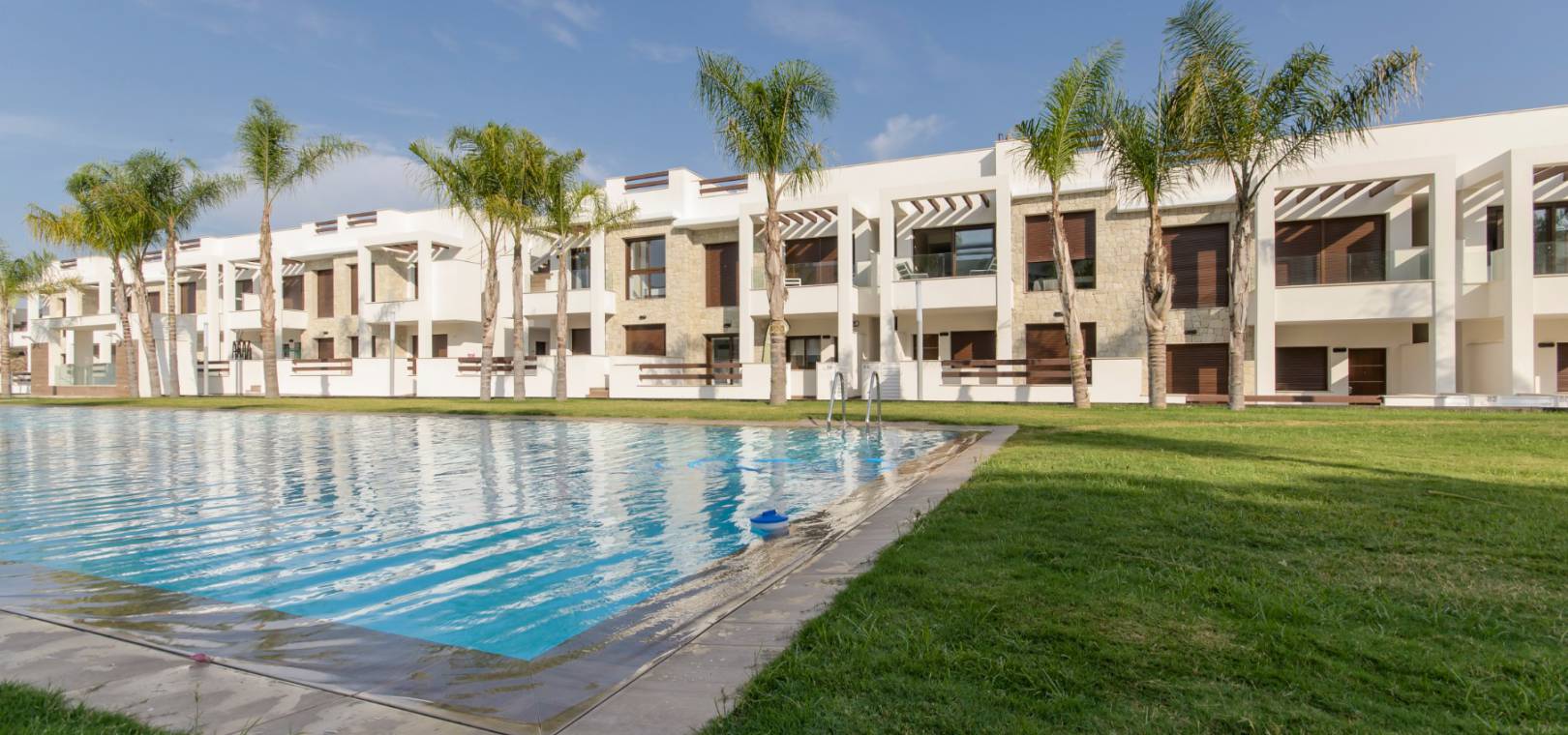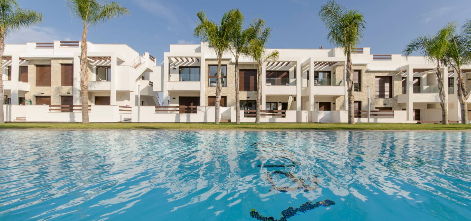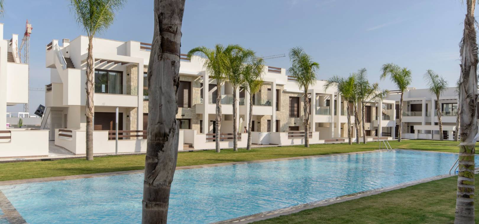 Ce développement luxueux et moderne se compose de 2/3 appartements/bungalows avec des options au rez-de-chaussée avec de grands jardins ou des modèles penthouse avec un grand solarium privé sur le toit. Il y a de beaux jardins communaux avec une piscine et un parking sécurisé avec débarras est également inclus. Ce beau développement est situé à Los Balcones, à proximité des commodités et offre de belles vues sur le lac salé.
