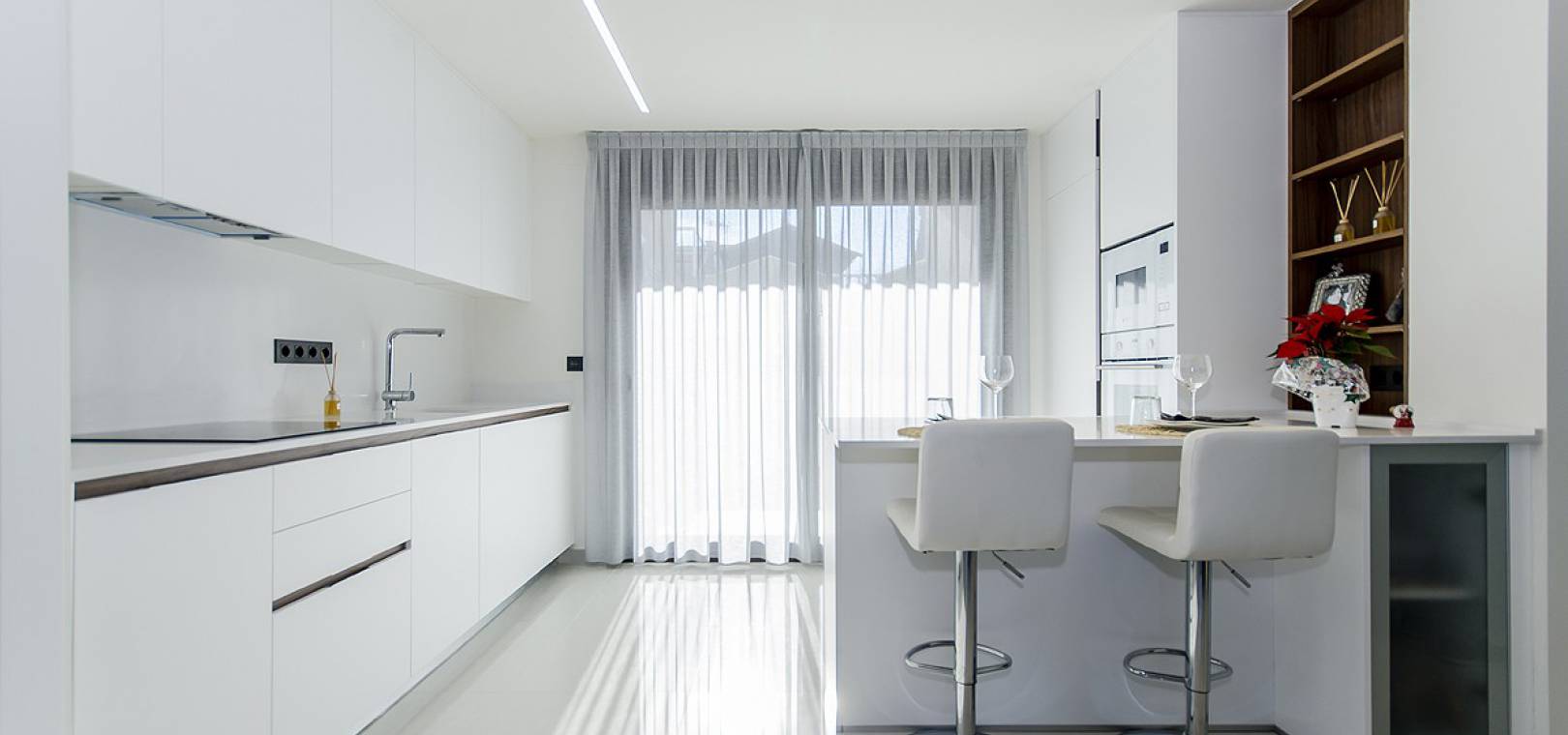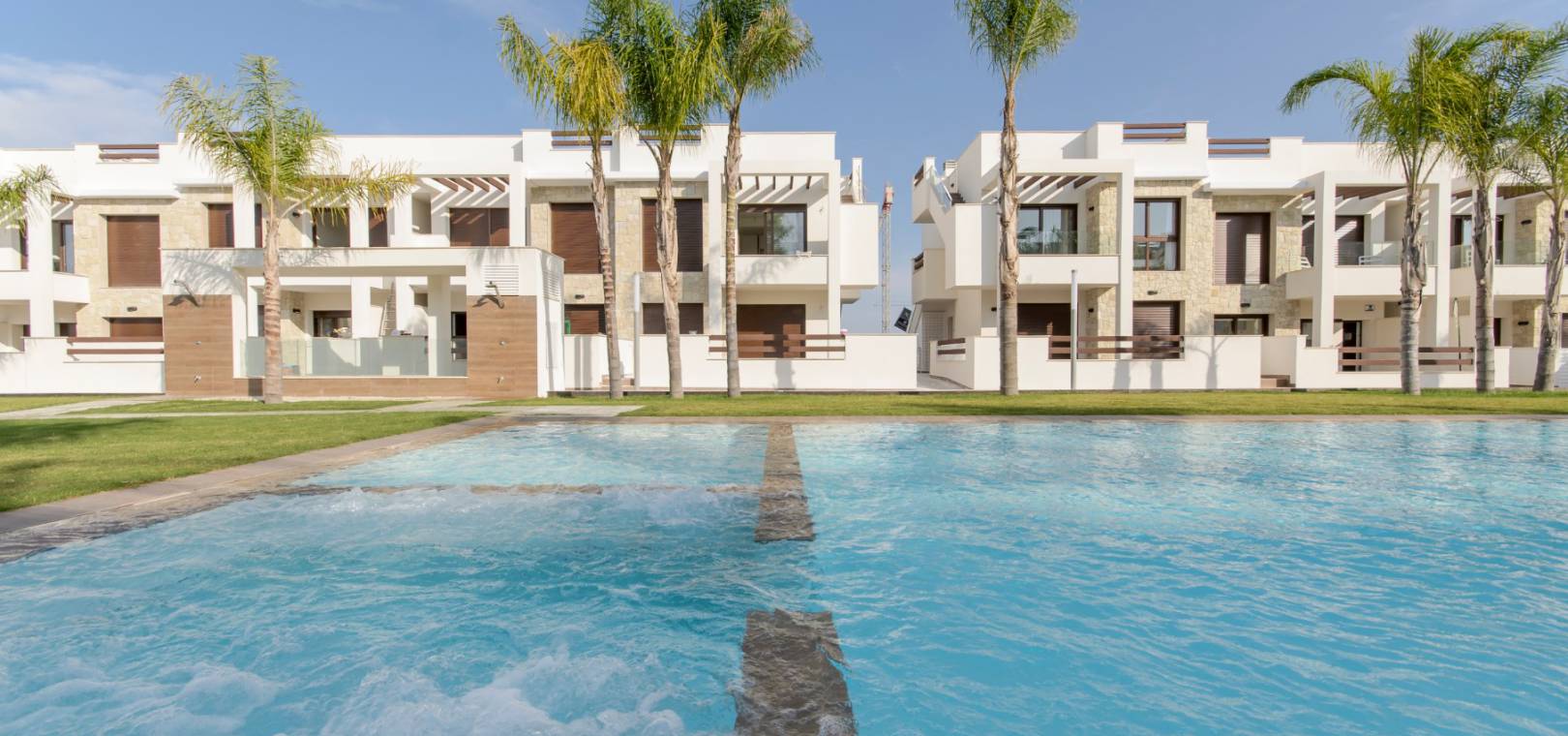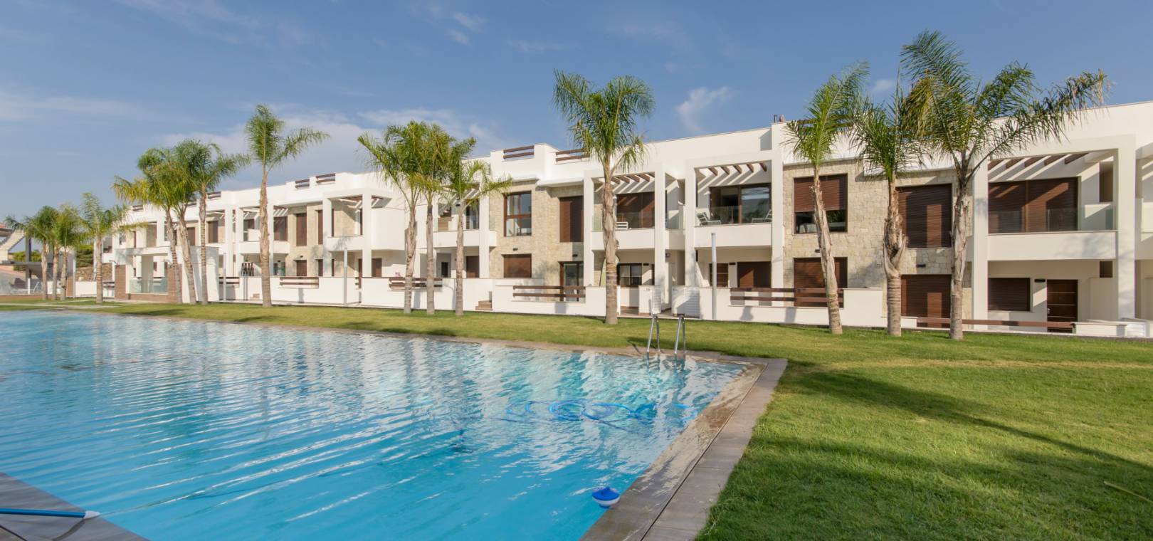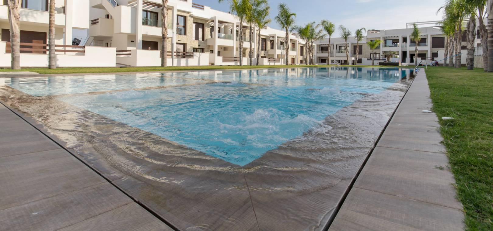 Ce développement luxueux et moderne se compose de 2/3 appartements/bungalows avec des options au rez-de-chaussée avec de grands jardins ou des modèles penthouse avec un grand solarium privé sur le toit. Il y a de beaux jardins communaux avec une piscine et un parking sécurisé avec débarras est également inclus. Ce beau développement est situé à Los Balcones, à proximité des commodités et offre de belles vues sur le lac salé.