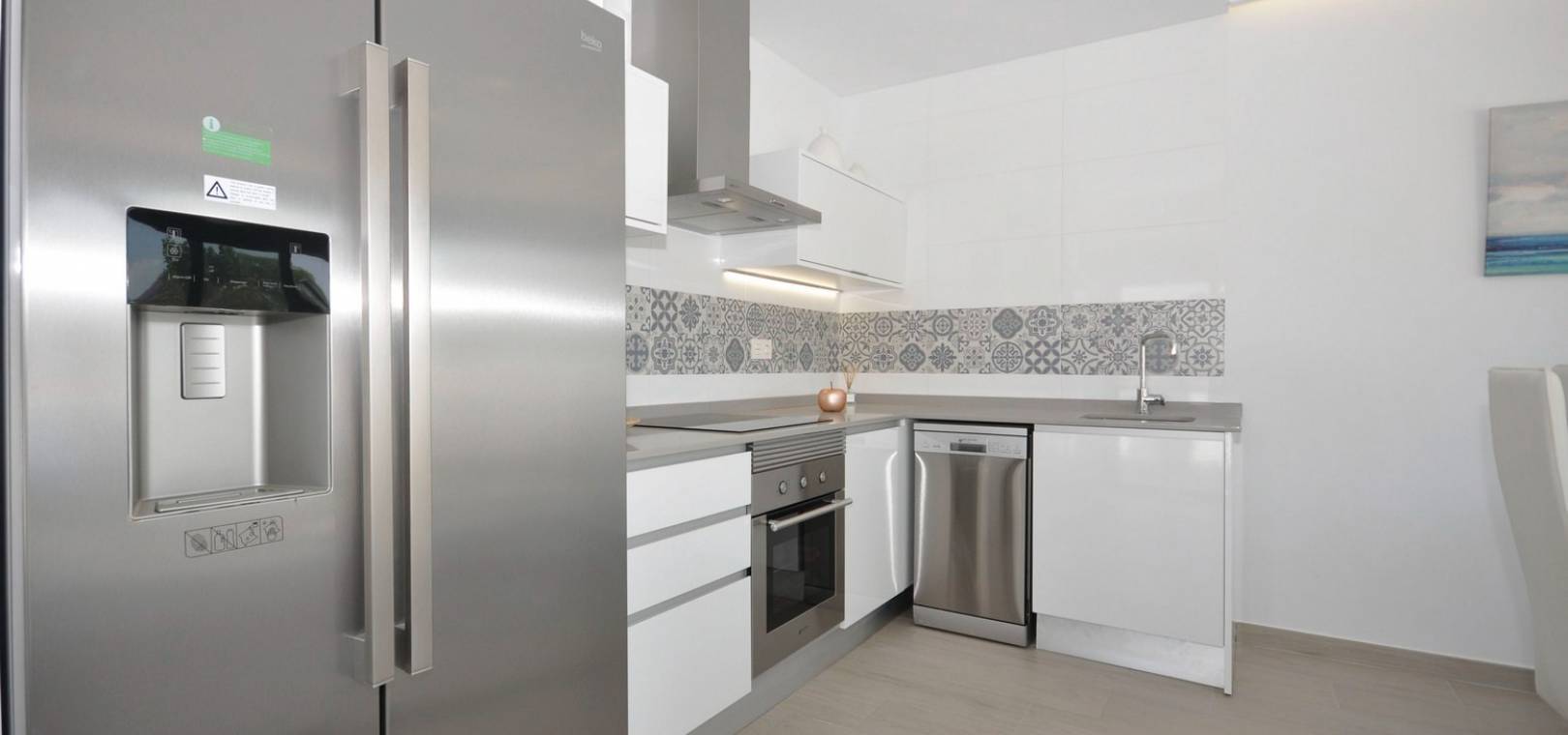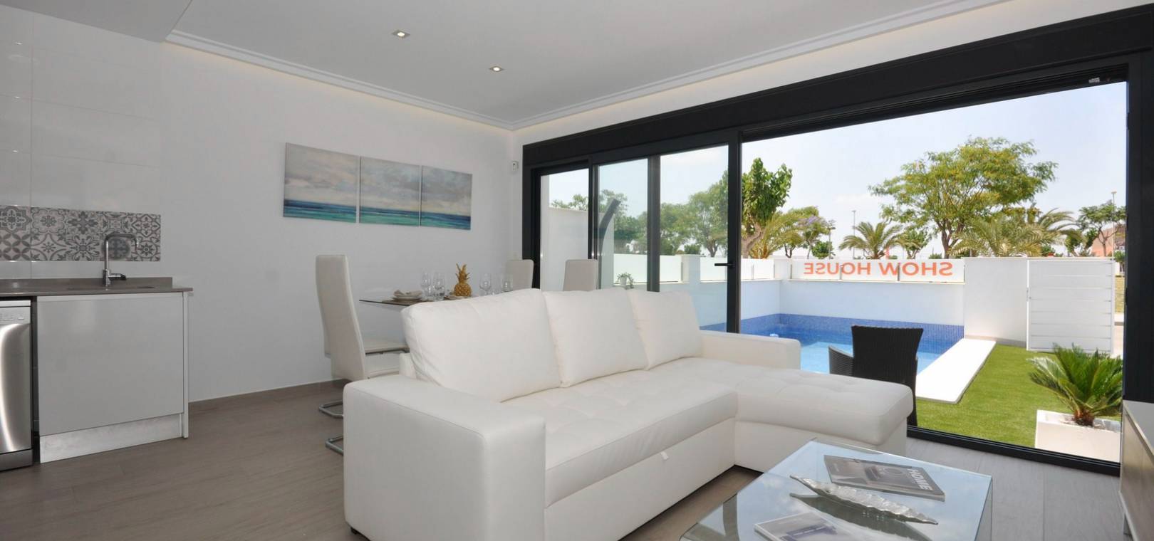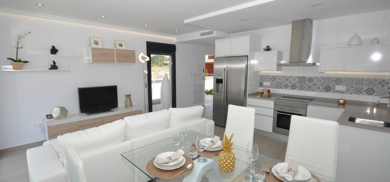Cette villa de luxe dispose d'un beau salon décloisonné avec des portes-fenêtres menant au jardin privé où vous avez la possibilité d'ajouter une piscine privée, une cuisine moderne avec électroménager comprenant four, plaque de cuisson, hotte, réfrigérateur/congélateur, lave-linge, lave-vaisselle et micro-ondes, deux chambres avec placards et une salle de bain libre.
