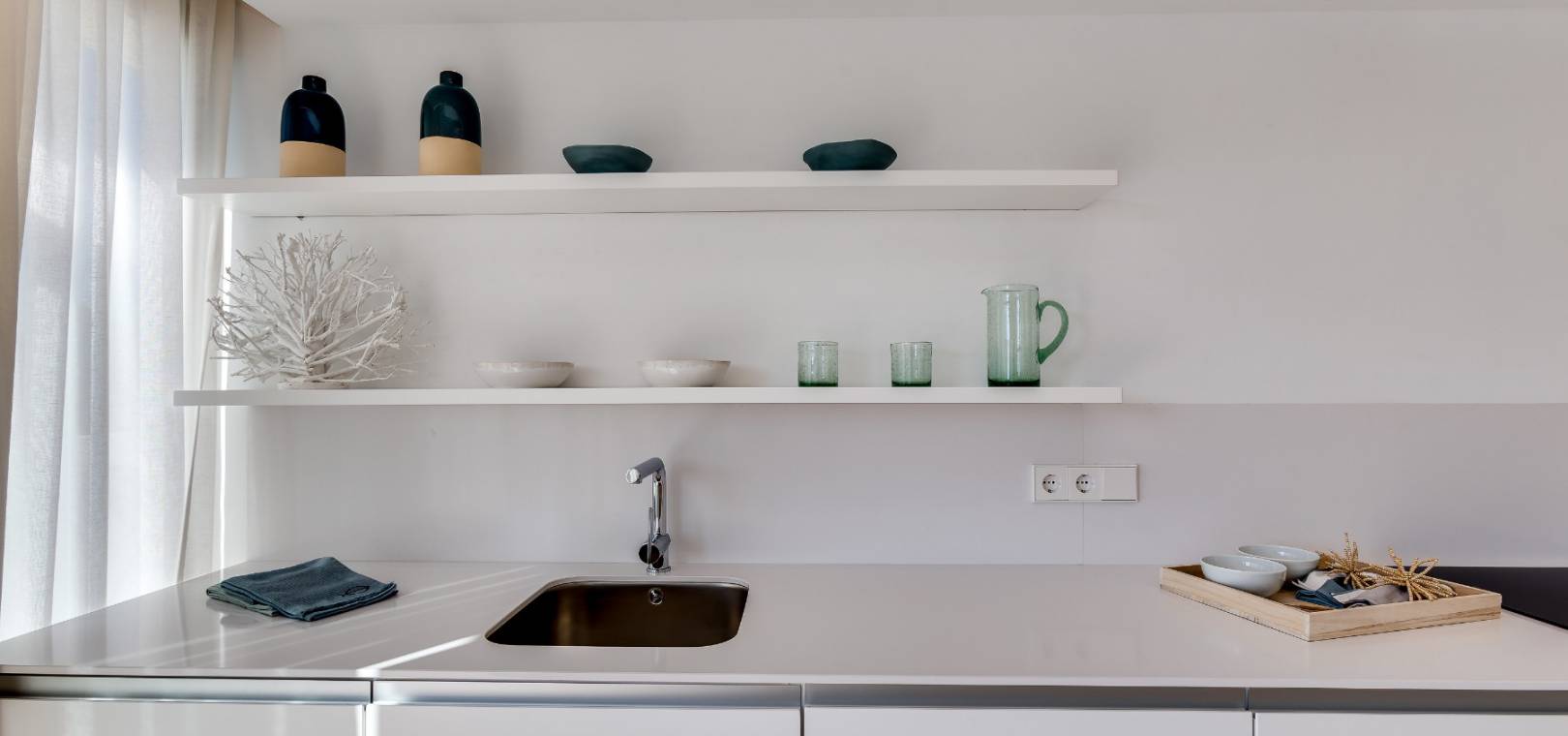 Ce penthouse de 2 chambres est fini et prêt à emménager et se compose d'un salon décloisonné avec portes-fenêtres donnant sur la terrasse, d'une cuisine moderne avec des appareils électroménagers comprenant un four, une plaque de cuisson, une hotte, un réfrigérateur/congélateur, un lave-linge. , lave-vaisselle et micro-ondes, une chambre principale avec dressing et salle de bain en suite, une autre chambre double également avec placards et une salle de bain pour invités. Des escaliers mènent à un grand solarium sur le toit où vous pourrez profiter du soleil toute la journée et d'une vue magnifique sur le lac salé.