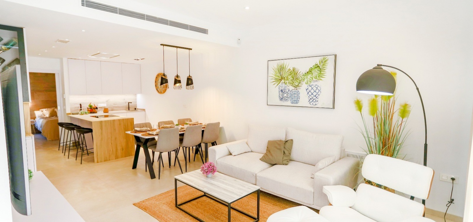 Ces appartements sont entièrement équipés et disposent d'une cuisine moderne avec appareils intégrés, éclairage intérieur et extérieur, climatisation chaud/froid et une place de parking extérieure en option et un débarras.
