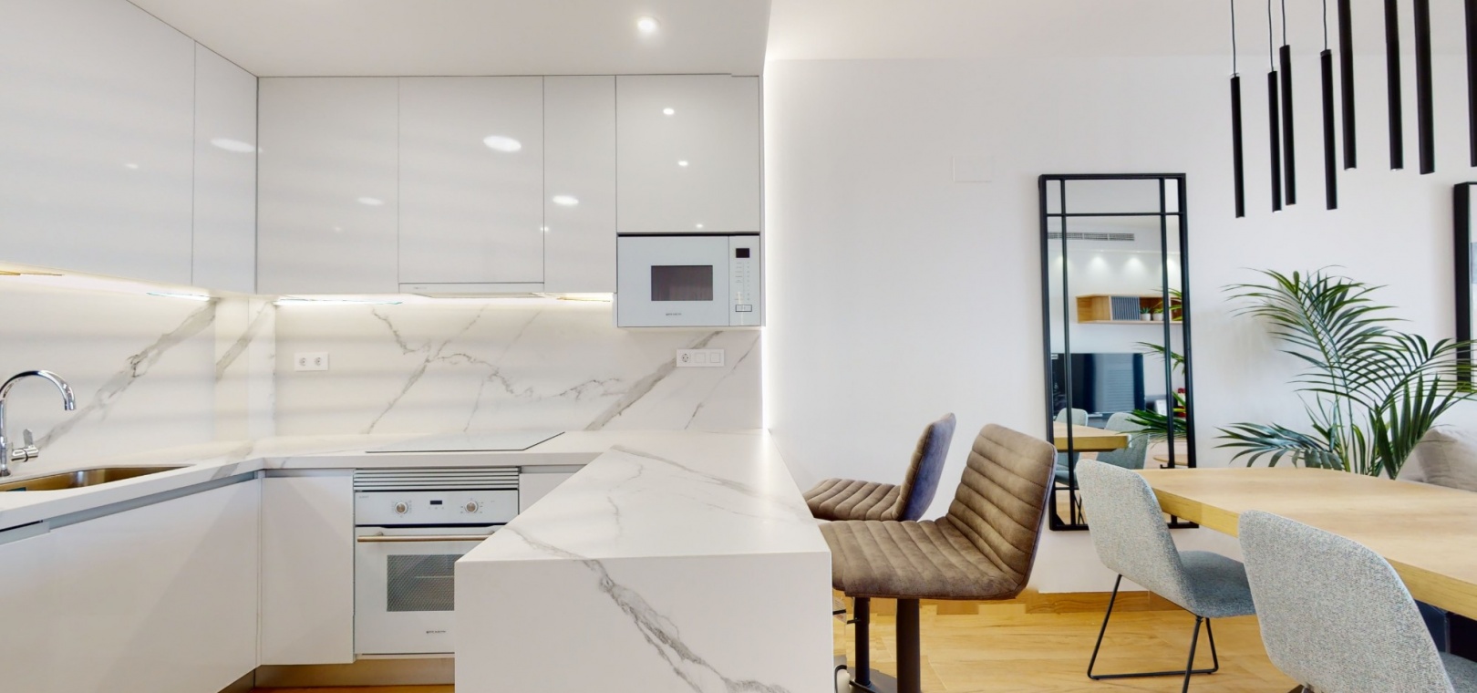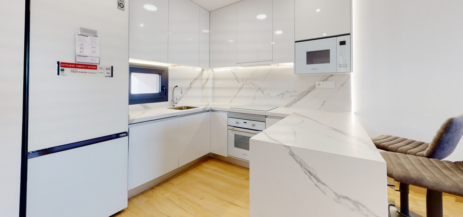 Chaque appartement dispose de la climatisation chaud/froid, d'un éclairage LED, du chauffage au sol dans les salles de bains, d'un parking et d'un débarras sécurisés et d'une cuisine moderne avec appareils intégrés.