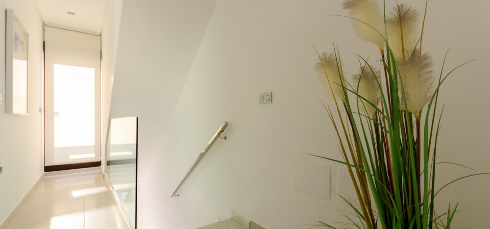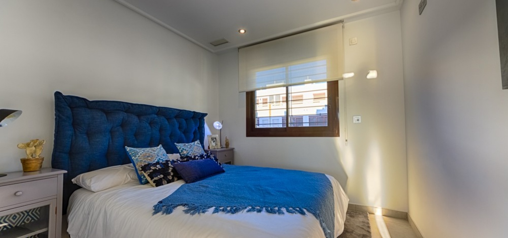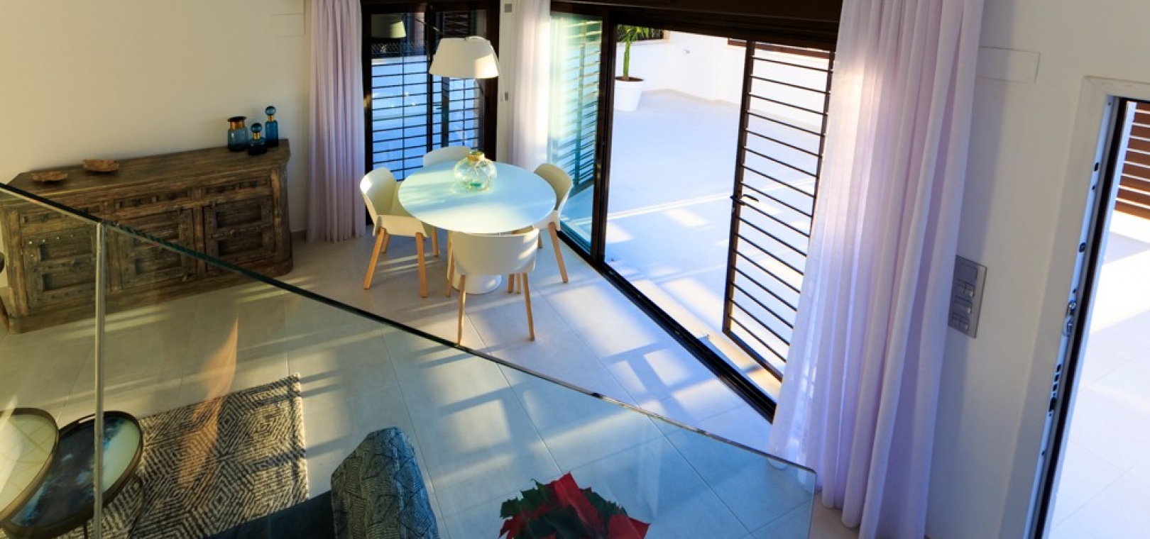 Au premier étage se trouve la chambre principale avec placards et terrasse privée, une autre chambre avec placards et une autre salle de bain complète. Il y a un escalier menant à un solarium privé de 41 m² sur le toit, où vous pourrez profiter d'une vue imprenable et du soleil toute la journée.