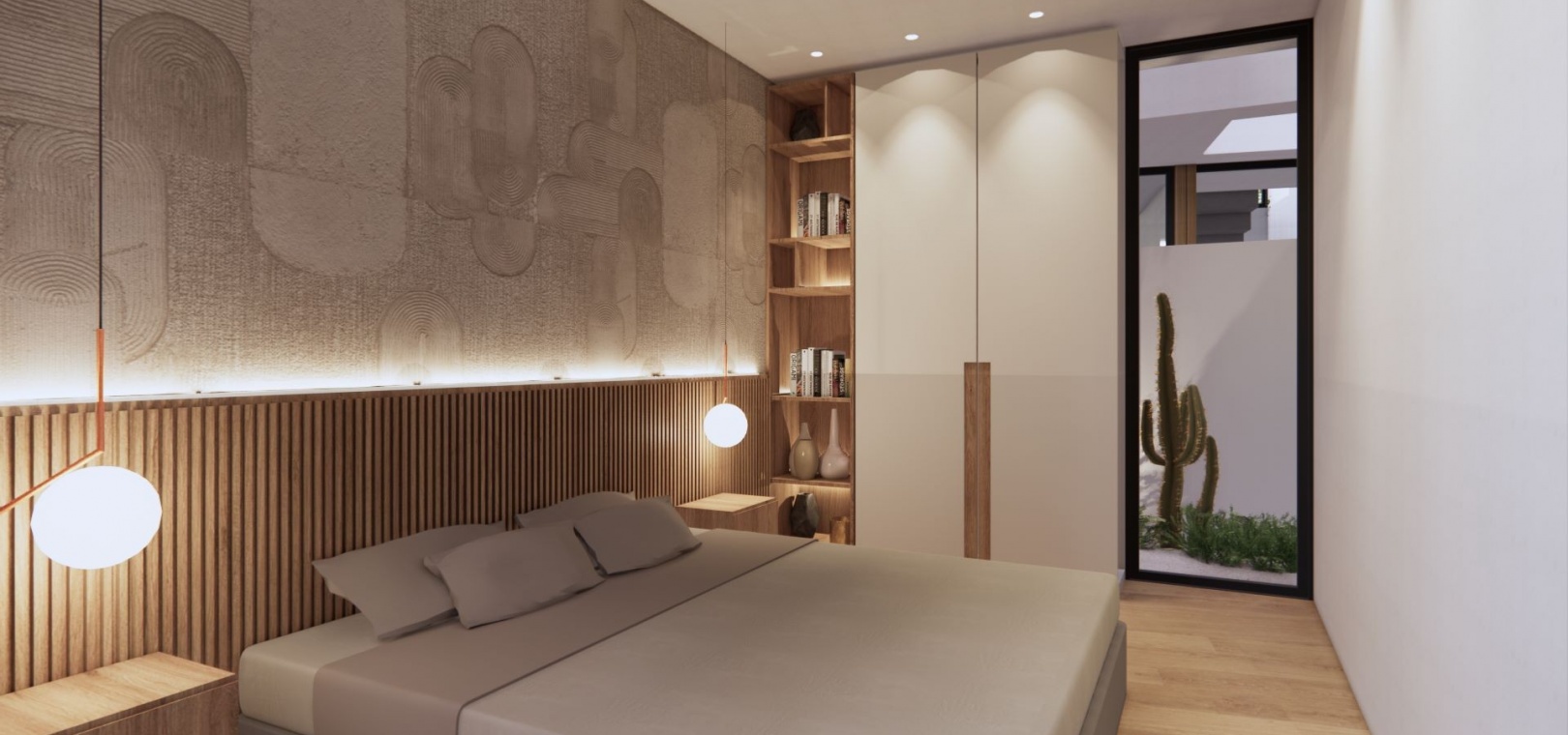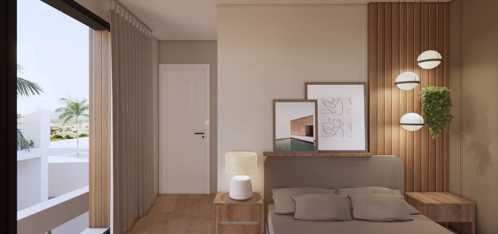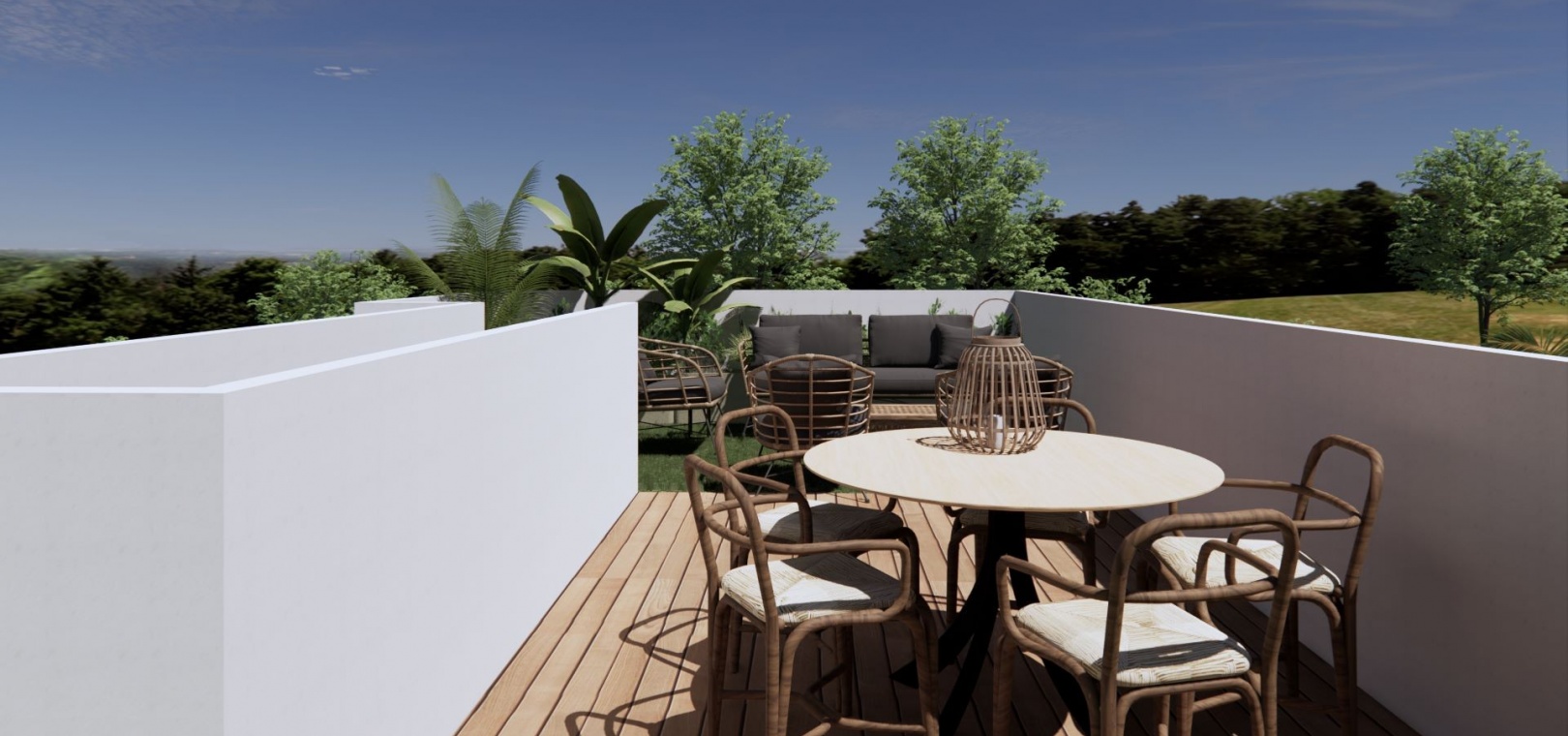 Au premier étage il y a une grande chambre principale avec dressing, salle de bain en suite et solarium privé, une autre chambre double avec placards intégrés, une autre salle de bain entièrement équipée et des escaliers menant à un solarium sur le toit. qui bénéficie d'une vue sur la mer et du soleil toute la journée.