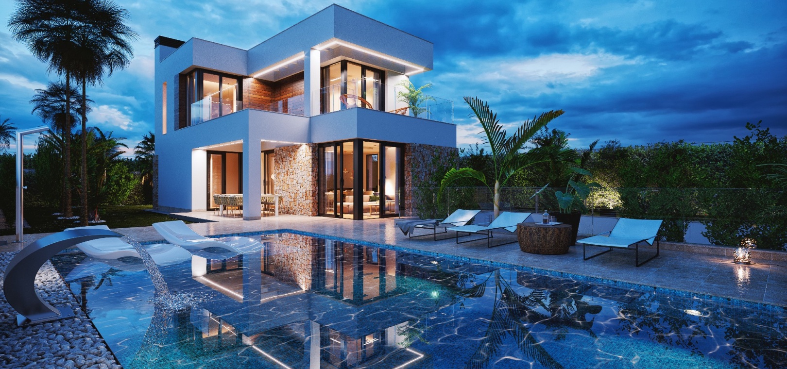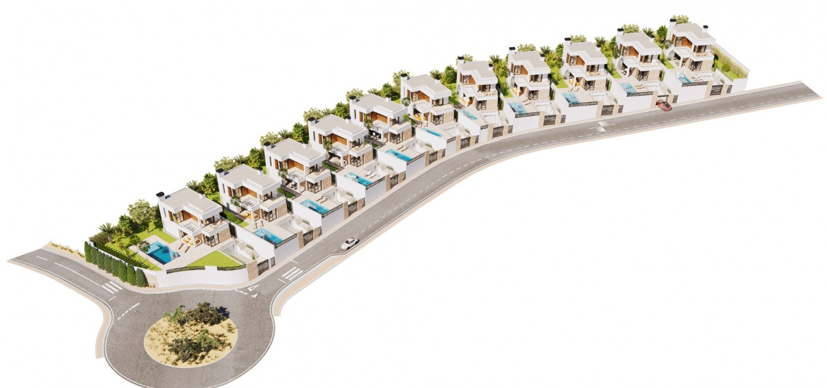 Il y a 11 parcelles disponibles et chaque propriété a sa propre piscine, une cuisine moderne avec des appareils électroménagers, un éclairage LED, la climatisation chaud/froid et un sous-sol avec un garage.