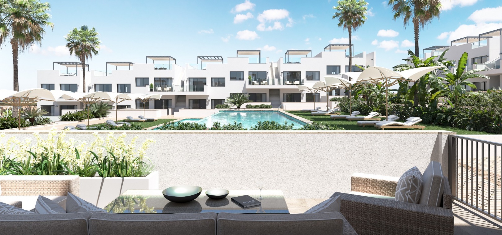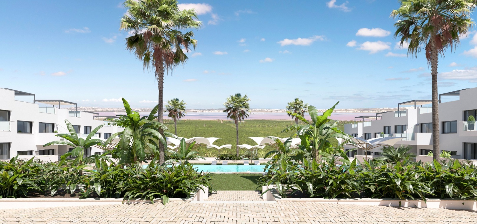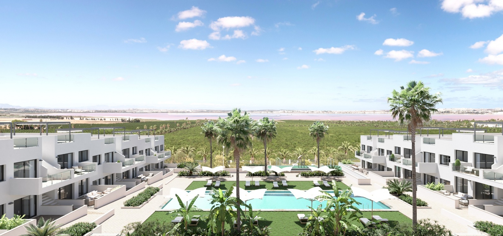 Vous pouvez choisir parmi des propriétés de 2 ou 3 chambres au rez-de-chaussée avec un jardin privé ou un penthouse avec un solarium sur le toit avec vue sur le lac salé.