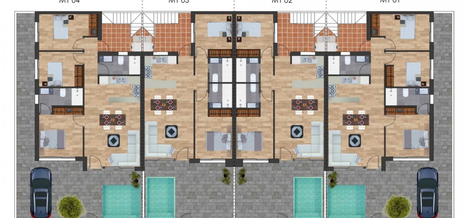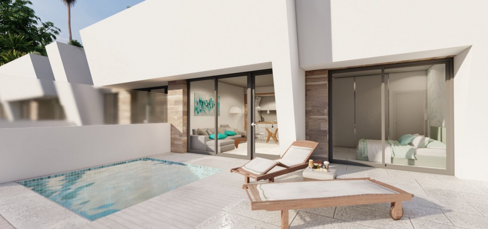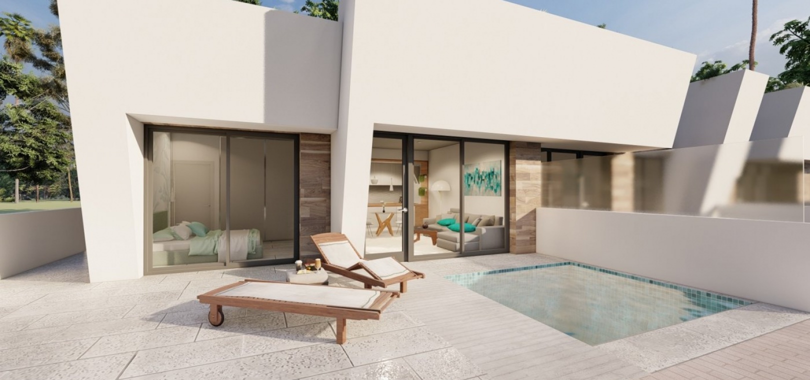 Nouveau complexe de 2 villas jumelées de style bungalow et 2 maisons de ville situé à Torre Pacheco, Costa Calida, Espagne.