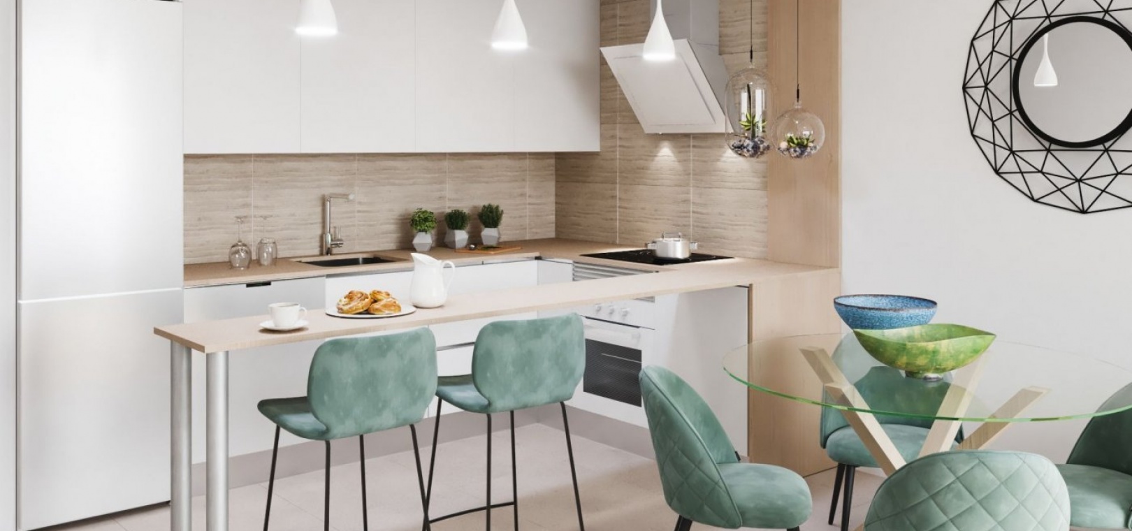 Les propriétés sont disponibles avec un choix de styles d'unités de cuisine et de carreaux.