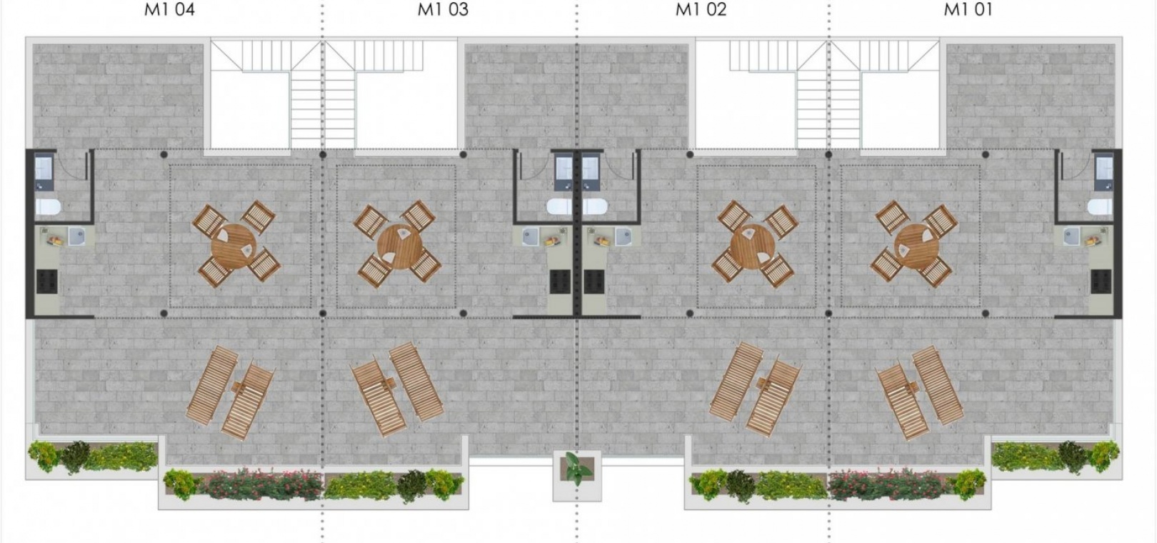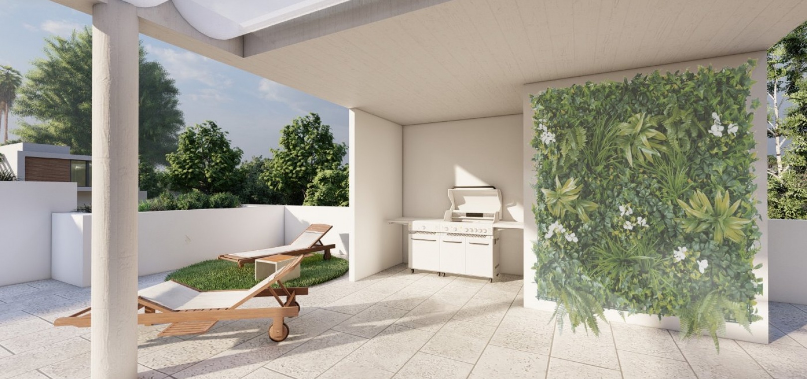 Des propriétés de design flambant neuves avec de fabuleuses terrasses sur le toit avec cuisine extérieure, barbecue et toilettes.