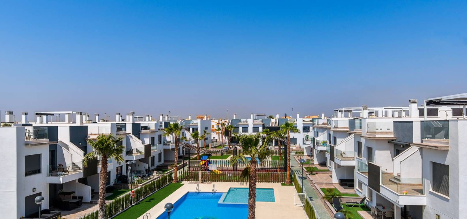 Ces propriétés sont construites en utilisant des matériaux de la plus haute qualité et obtiennent la cote d'efficacité énergétique la plus élevée possible. Les bungalows sont construits sur deux niveaux avec des unités au rez-de-chaussée avec une terrasse de bonne taille et des unités au dernier étage avec un grand solarium sur le toit et une vue sur la mer, toutes avec 2 chambres et deux salles de bains. La chambre principale est en suite avec une chambre d'amis, toutes deux avec placards et salle de bains familiale. La cuisine est en forme de U de bonne taille avec une barre de petit déjeuner. Ces propriétés ont une superficie construite d'environ 70 m2 avec de hauts plafonds, ce qui les rend très spacieuses. Les coûts de la communauté devraient être d'environ 35 € par mois - il y a deux piscines avec des espaces verts et chaque propriété a une place de parking attribuée sur les actes - il y a 4 portes automatiques pour entrer dans la route intérieure et des places de parking. Le terrain est situé à proximité de Pilar de la Horadada avec toutes ses commodités et à proximité de l'une des meilleures plages de la côte. Il y a plusieurs terrains de golf à proximité et le centre-ville avec une foule de bars et d'excellents restaurants est à seulement 600 mètres de ces maisons.