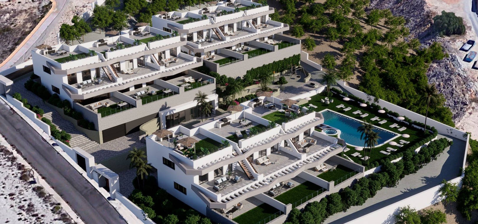 Residencial Luz est un projet de luxe exclusif de seulement 18 maisons, situé à Finestrat, dans les collines de la Sierra Cortina, à proximité de la ville animée de Benidorm. Le complexe offre une vue panoramique sur la mer, se trouve à 5 minutes en voiture d'un centre commercial et de nombreux services et à 10 minutes en voiture des belles plages de Benidorm. A quelques minutes de la propriété, vous trouverez le célèbre parc à thème Terra Mítica, un parc aquatique, une piste de karting et 2 terrains de golf.