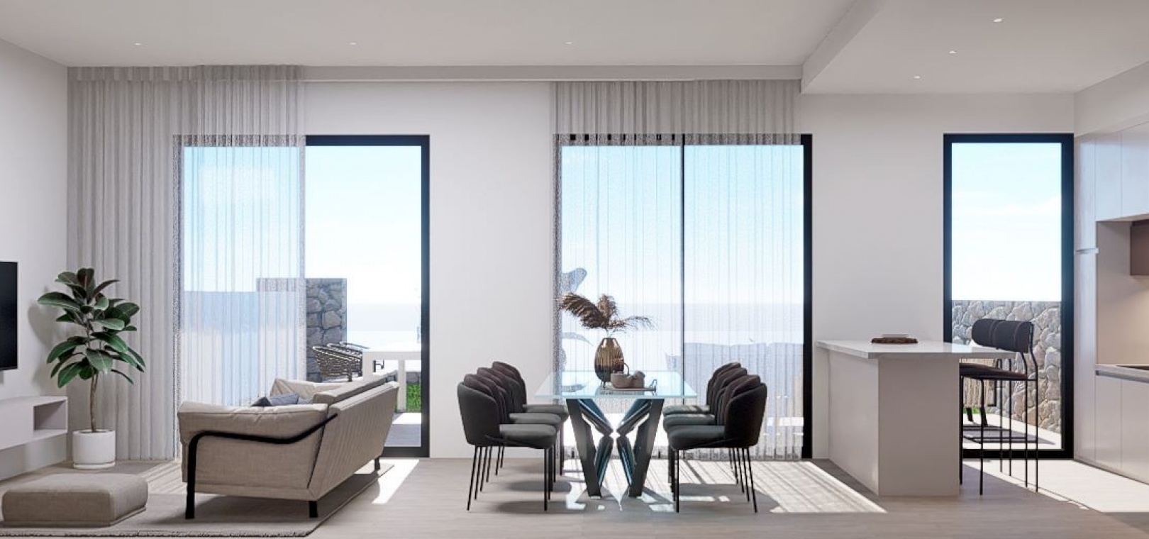 Cet incroyable complexe offre la possibilité d'appartements de luxe de 2 ou 3 chambres, rez-de-chaussée avec jardin privé ou penthouse avec solarium sur le toit. Chaque appartement dispose de sa propre place de parking, d'une cuisine moderne avec appareils intégrés, d'un jardin commun avec piscine et salle de fitness.