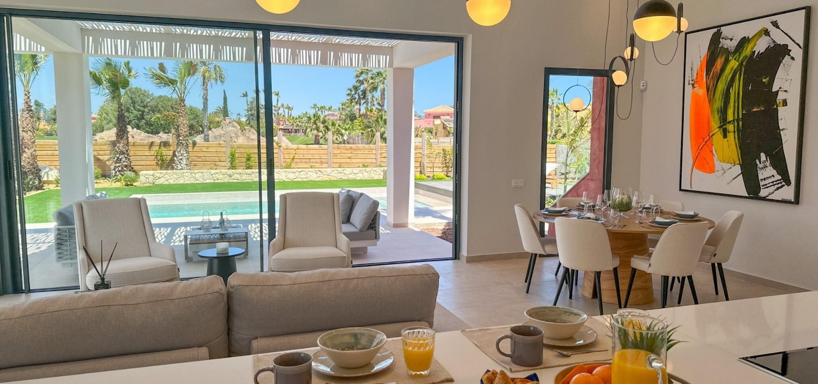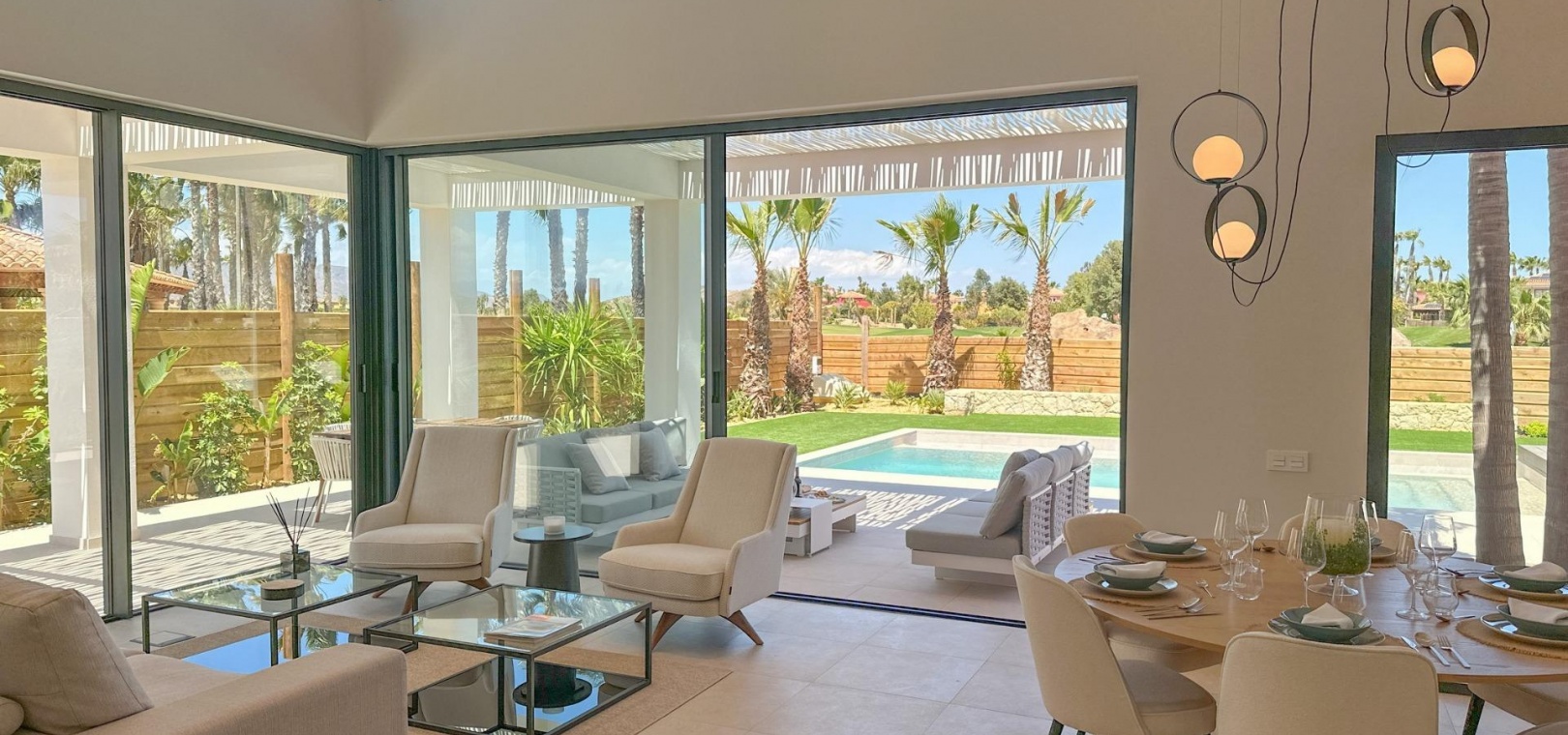 Les caractéristiques comprennent une réception intérieure spacieuse qui s'ouvre de plain-pied sur les vérandas couvertes et le jardin pour offrir plus de 93 m2 d'espace combiné intérieur/extérieur pour vivre et manger, conçu pour être utilisé comme un tout dans le climat particulièrement privilégié de la région.