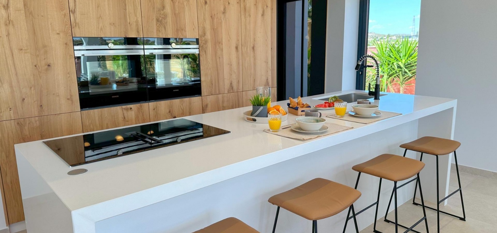 Le double vitrage, une cuisine équipée de haute qualité, des produits blancs intégrés et des armoires de chambre, ainsi que des équipements de sécurité sont standard dans l'ensemble de la propriété.