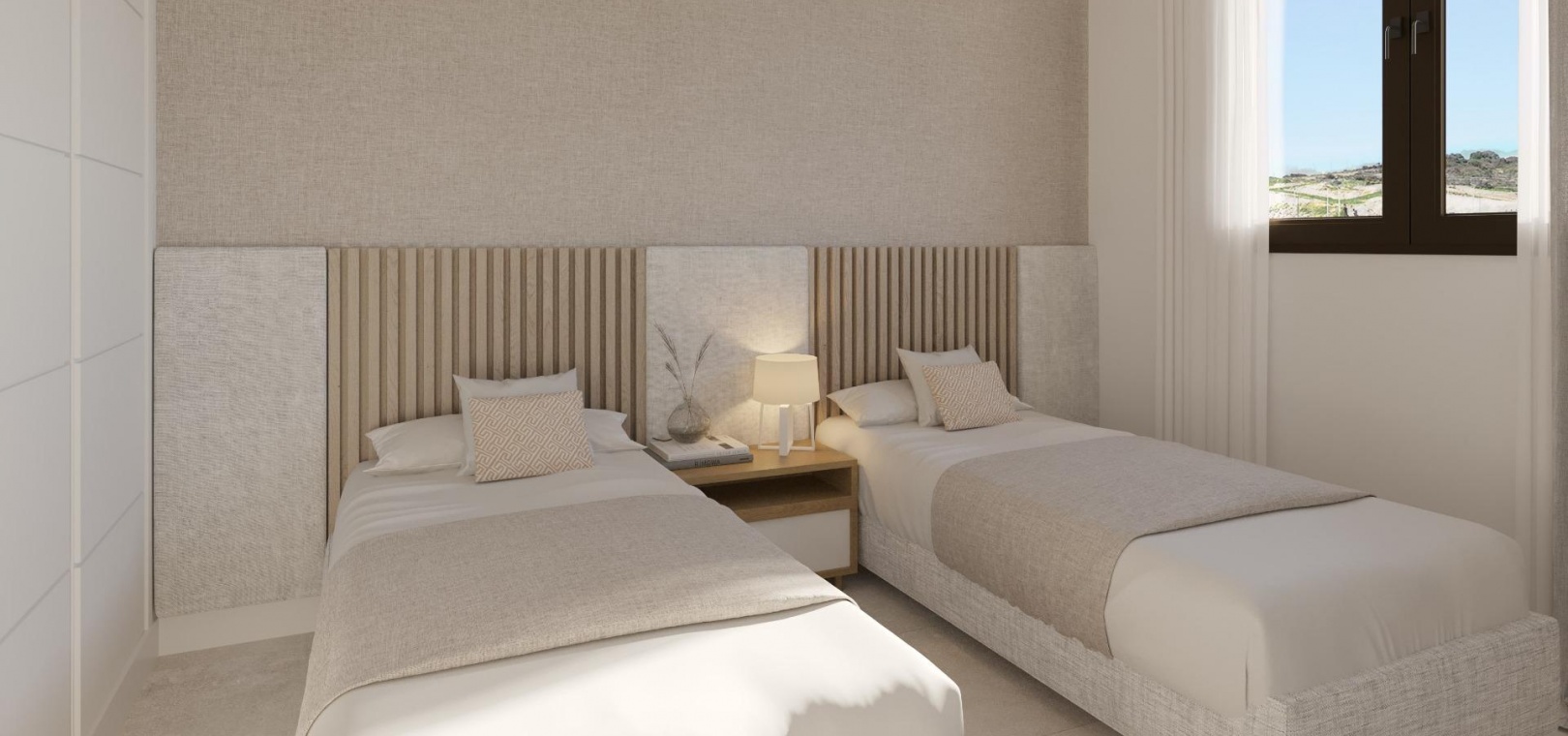 Complexe résidentiel fermé, idéal pour vivre. Développement de 41 maisons avec 1, 2 et 3 chambres à coucher, dans 2 bâtiments bas. Des appartements au rez-de-chaussée avec jardin, des appartements avec de grandes terrasses et des penthouses avec solarium privé sont disponibles. Avec des espaces paysagers, une piscine commune, un gymnase et une salle communautaire. L'orientation sud-est des maisons permet de profiter de la lumière naturelle et de l'impressionnant environnement marin de la côte méditerranéenne.