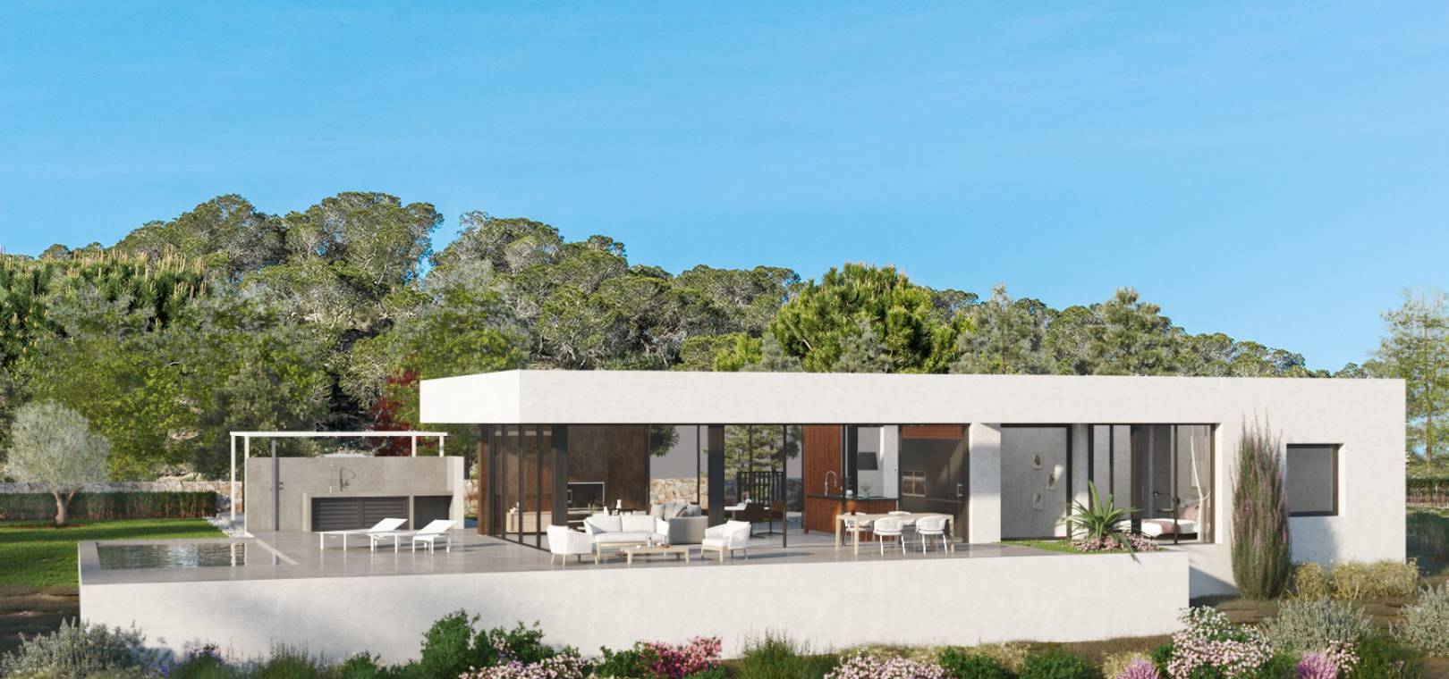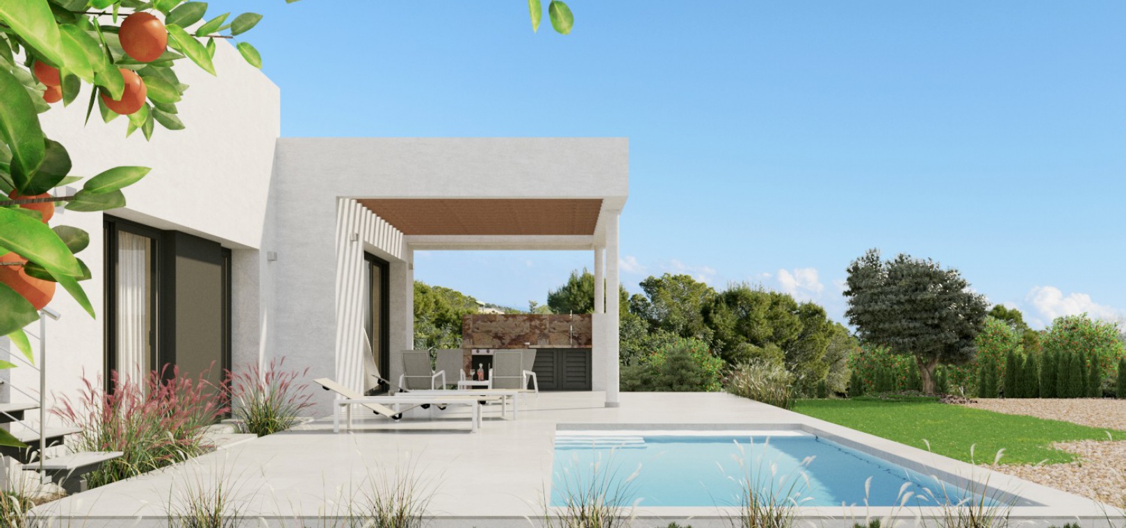 Deze gelijkvloerse villa is gebouwd op een groot perceel en bestaat uit een prachtige open woonkamer met openslaande deuren over de volledige lengte naar de tuin met zwembad, moderne keuken met inbouwapparatuur zoals oven, kookplaat, afzuigkap, koelkast/vriezer, wasmachine, vaatwasser en magnetron, eethoek, bijkeuken, badkamer, hoofdslaapkamer met kleedkamer en badkamer en suite, twee andere tweepersoonsslaapkamers eveneens met inbouwkasten en nog een complete badkamer.