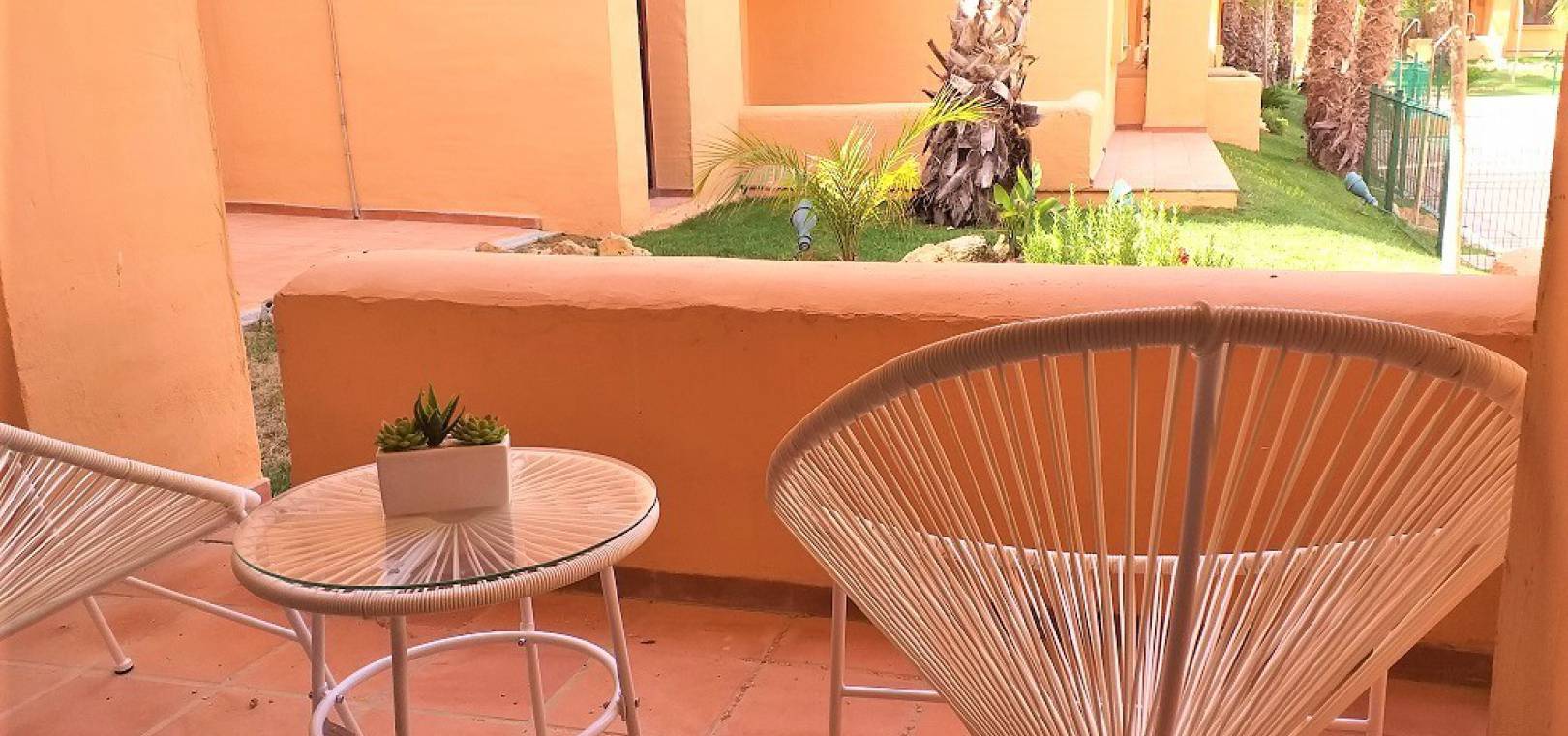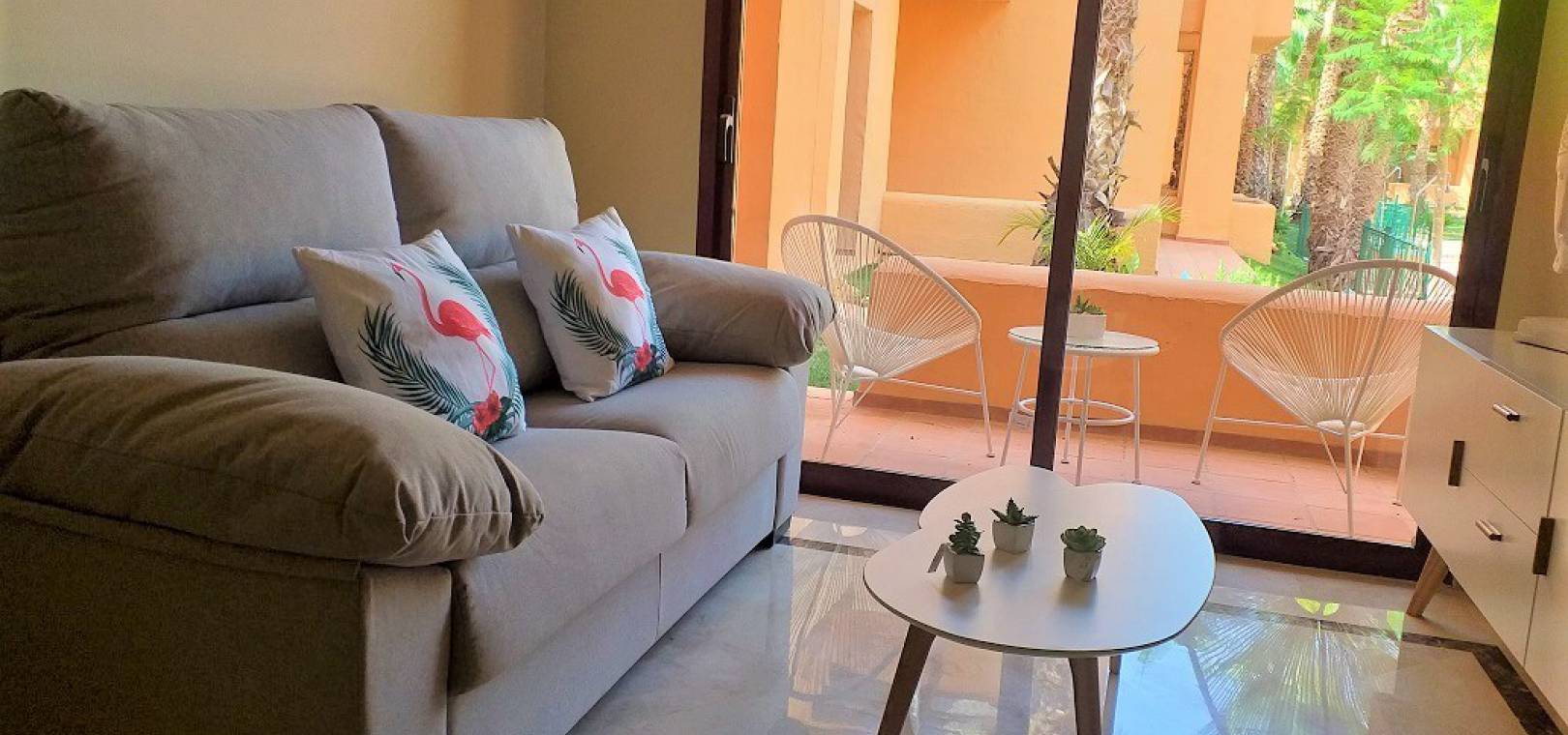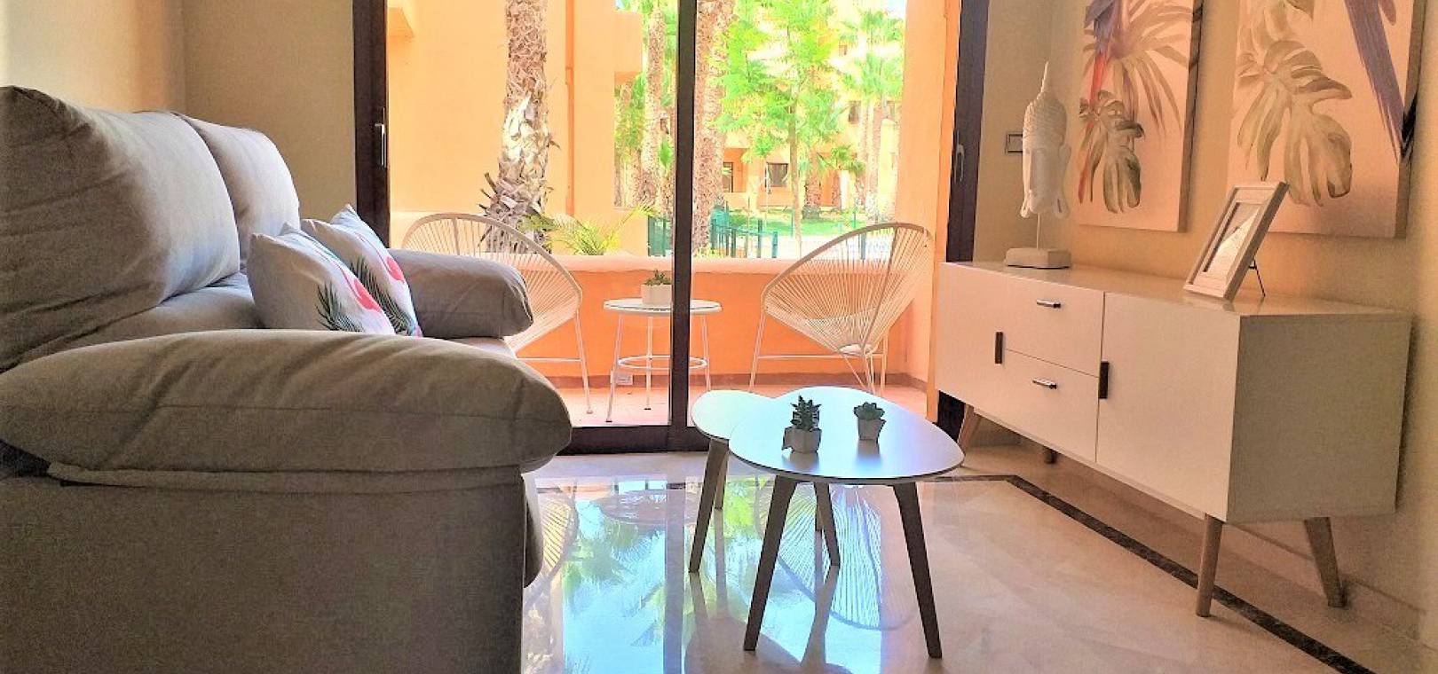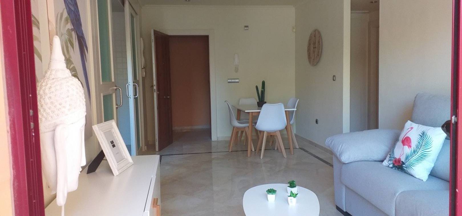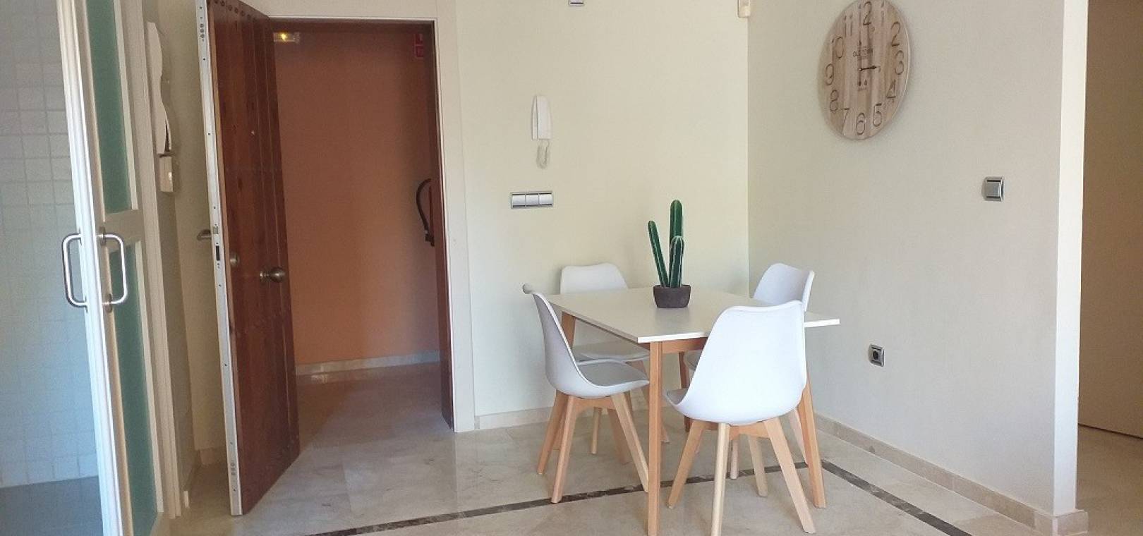 Dit turnkey appartement bestaat uit een open woonkamer met openslaande deuren naar het terras, een aparte keuken met inbouwapparatuur waaronder oven, kookplaat, afzuigkap, koelkast/vriezer, vaatwasser, wasmachine en magnetron, een tweepersoons slaapkamer met inbouw- in kasten en een complete badkamer.