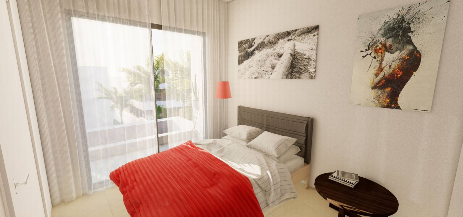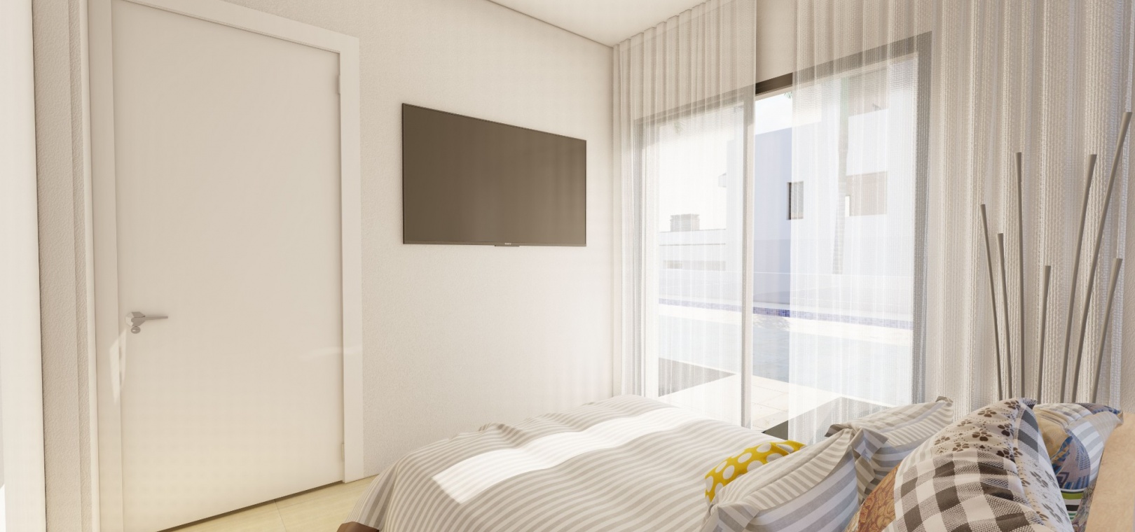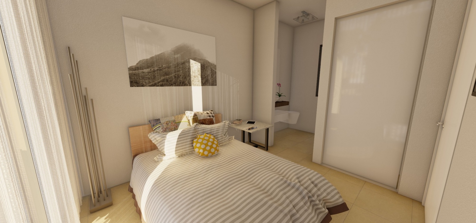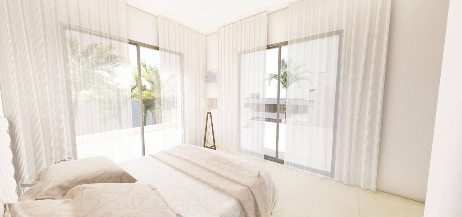 Een trap leidt naar de eerste verdieping waar u een grote slaapkamer vindt met inbouwkasten, en-suite badkamer en privé solarium, nog een tweepersoonsslaapkamer met inbouwkasten en en-suite badkamer en nog een solarium hierop. niveau.