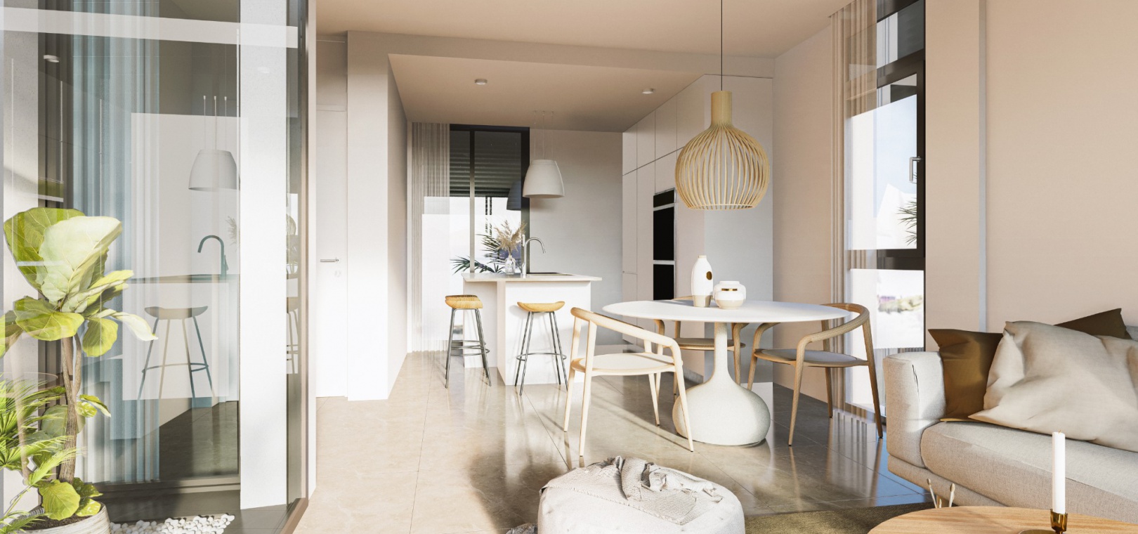 Deze luxe en moderne appartementen liggen op slechts 300 meter van het strand in Mar de Cristal, dicht bij het bruisende stadje Los Belones in La Manga op de Mar Menor. In deze exclusieve ontwikkeling heeft u de keuze uit 2 of 3 slaapkamer appartementen op de begane grond met een tuin of een penthouse met een dakterras. De woningen zijn gebouwd volgens de hoogste standaard en beschikken over een moderne keuken met witgoed, prachtige gemeenschappelijke tuinen met zwembad, beveiligde ondergrondse parkeergarage en berging.