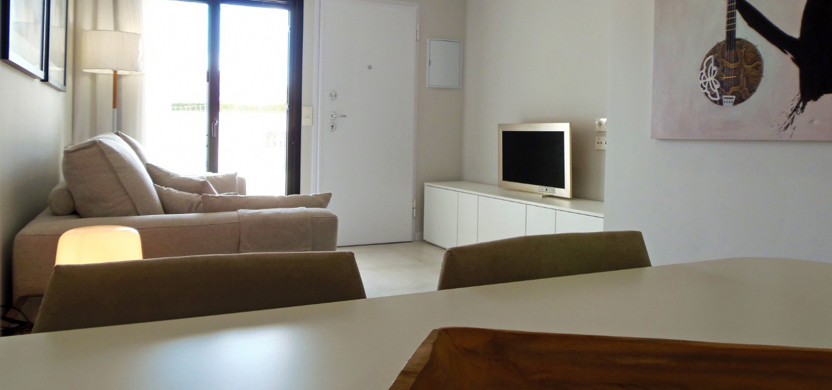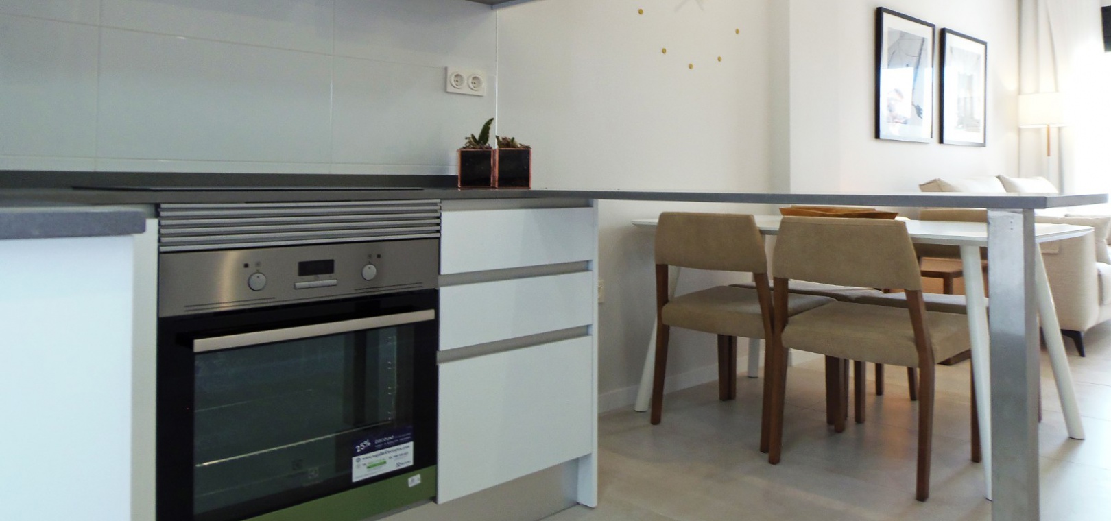 Dit penthouse bestaat uit een open woonkamer met openslaande deuren naar het terras, eethoek, moderne keuken met inbouwapparatuur zoals oven, kookplaat, afzuigkap, koelkast/vriezer, wasmachine, vaatwasser en magnetron, een hoofdslaapkamer met inbouwkasten en badkamer en suite, nog twee slaapkamers met inbouwkasten en een gastenbadkamer. Een trap leidt naar het dakterras waar u de hele dag van de zon kunt genieten.