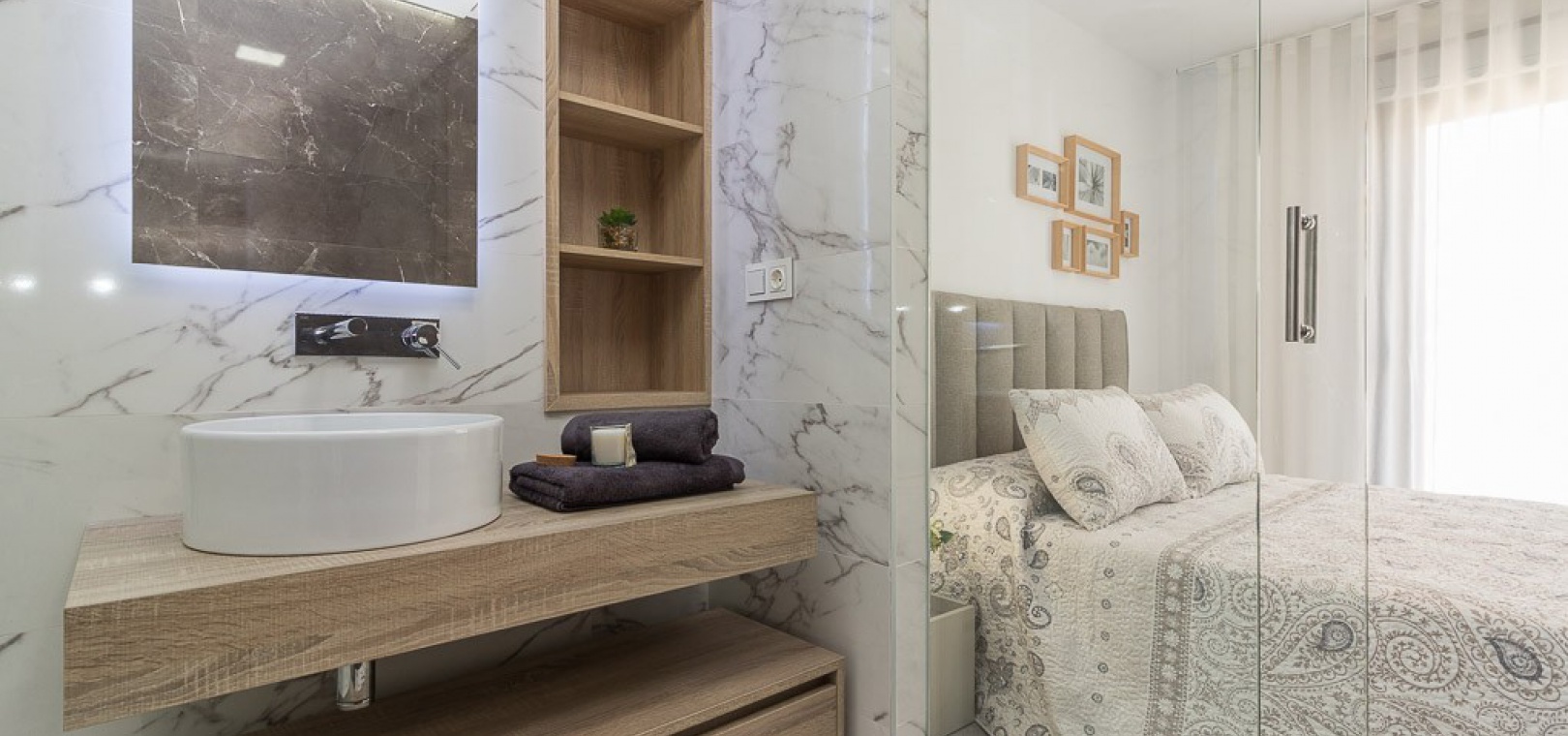 TIJDELIJKE AANBIEDING: elke woning is inclusief alle meubels, alle verlichting, keukenapparatuur, geïnstalleerde airconditioning warm/koud, bewaakte parkeerplaats, alarm, vloerverwarming in badkamers, elektrische rolluiken en internet- en opstalverzekering voor het eerste jaar.