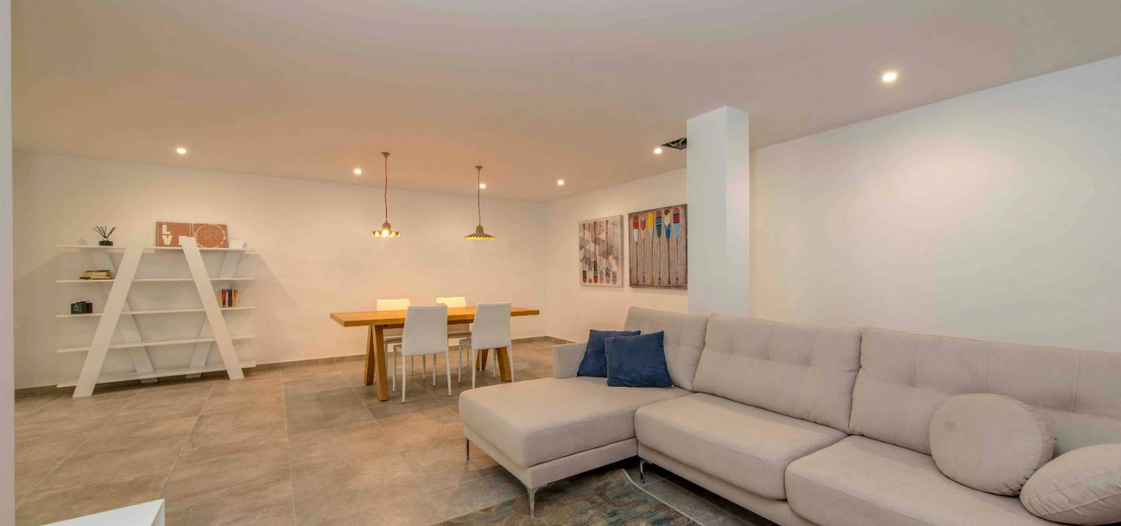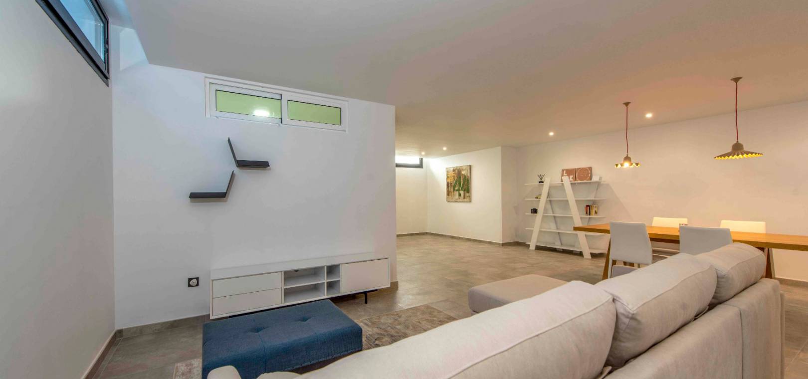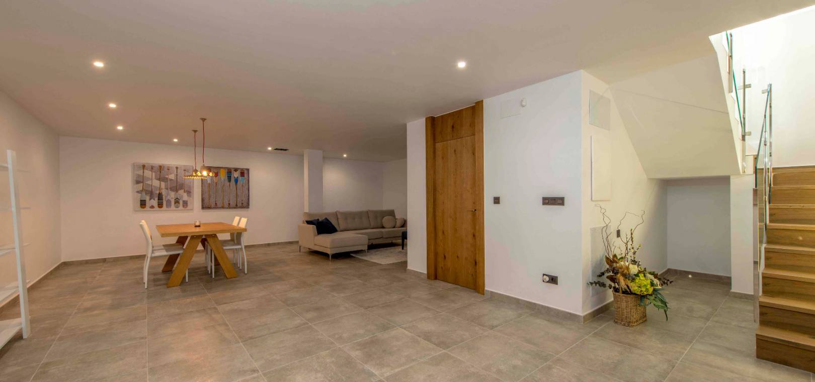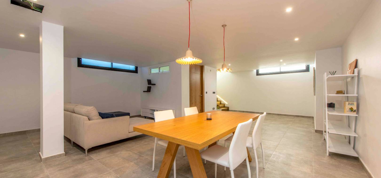 Wanneer u het huis op de begane grond betreedt, vindt u een grote open moderne woon / eetkamer met grote openslaande deuren naar het zwembad en de privétuin. Er is een mooi groot terras om echt te genieten van al fresco dineren in de zon. Er is ook een tweepersoonsslaapkamer met een moderne en-suite badkamer van hoge kwaliteit en een gastenbadkamer.