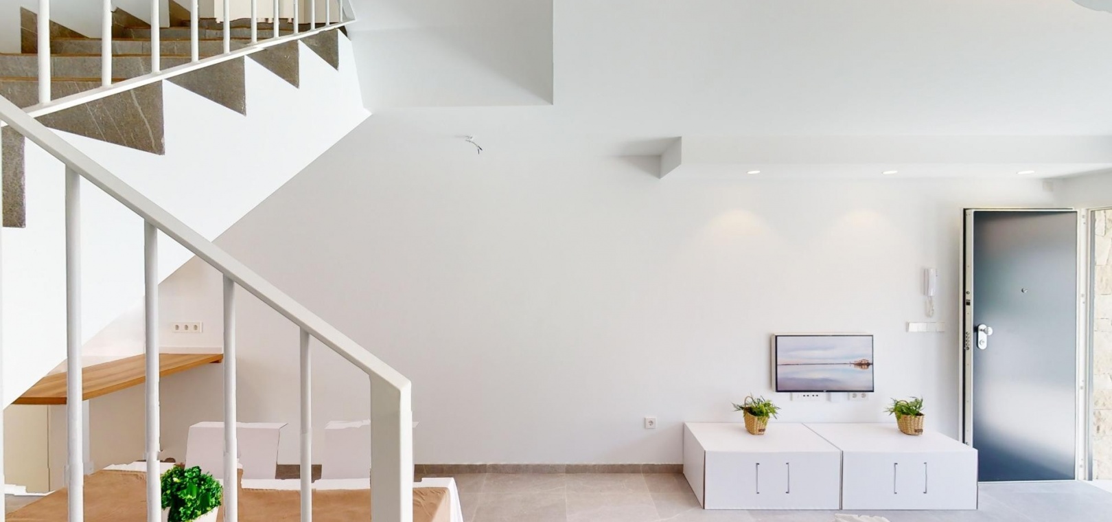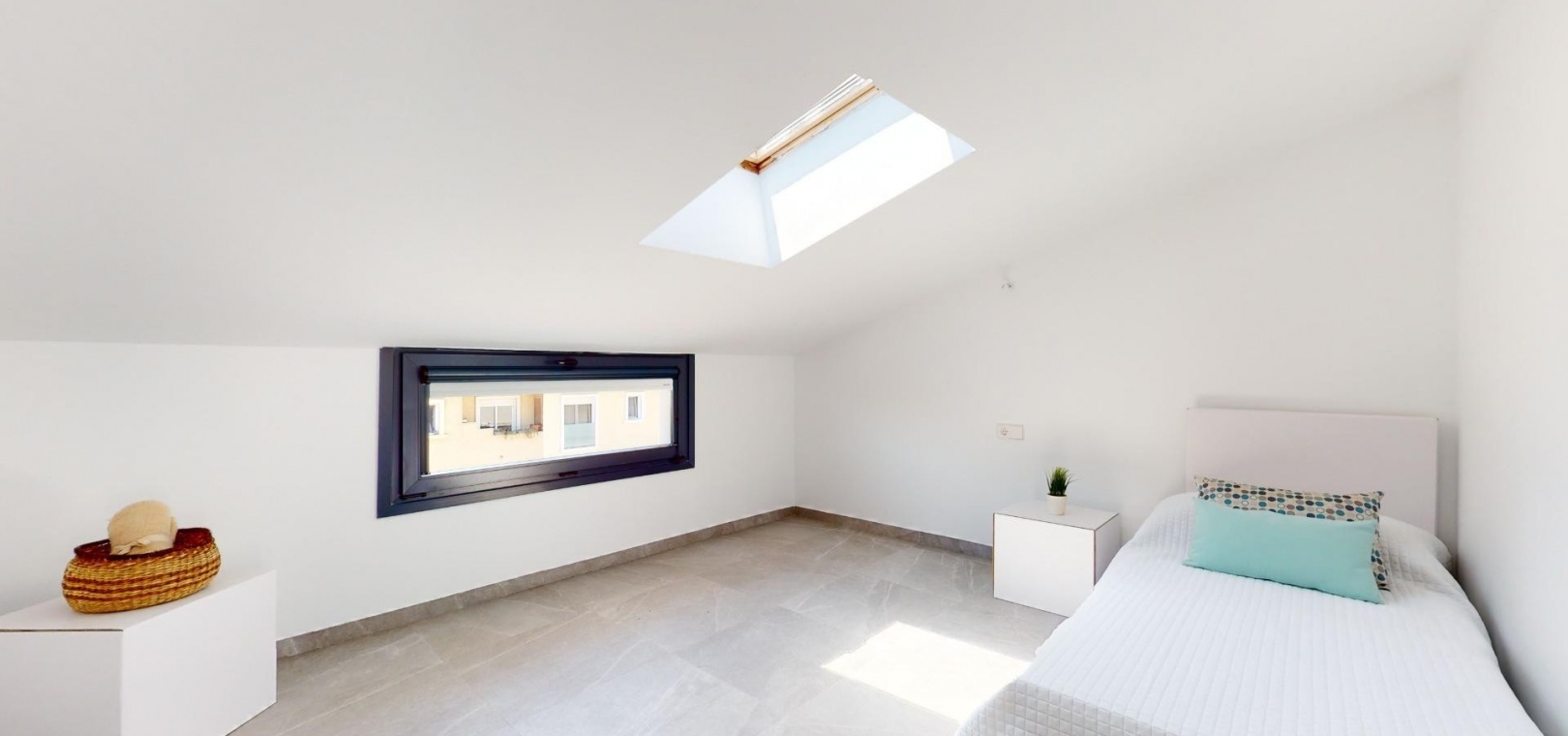 Een extra trap leidt naar de hoofdslaapkamer met en-suite badkamer en een privéterras waar u de hele dag kunt genieten van de zon van de Costa Blanca.