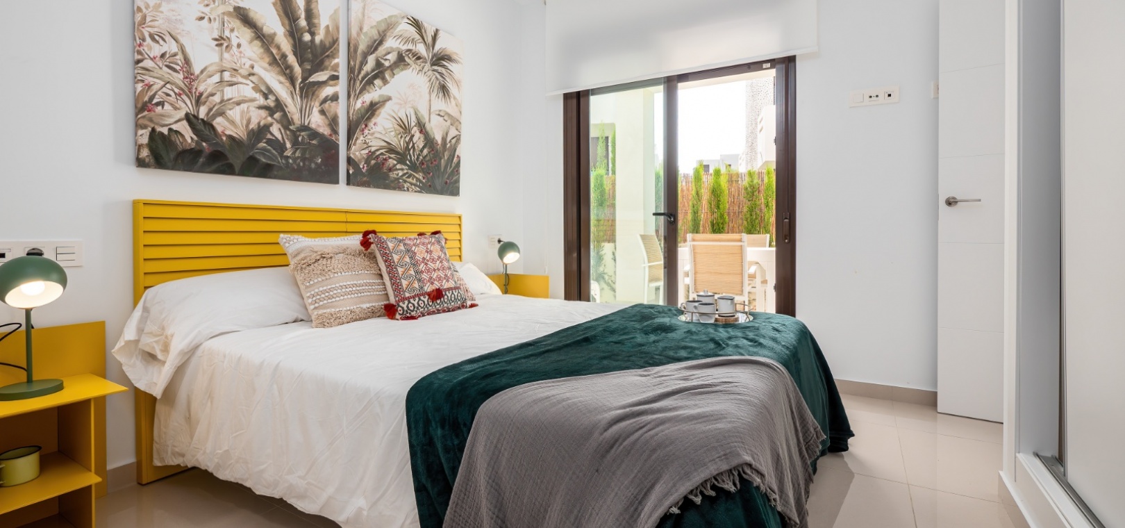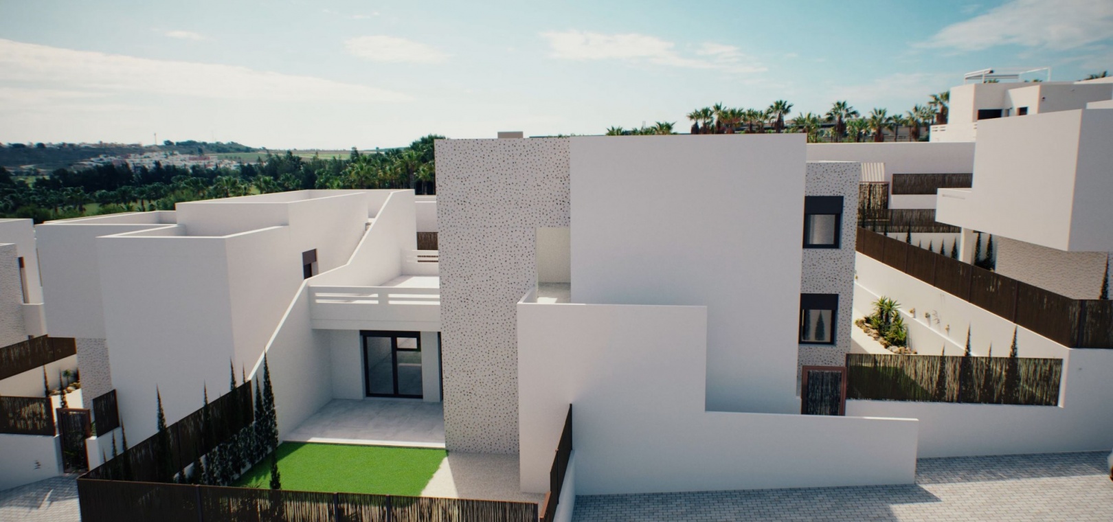 Er is een selectie van appartementen op de begane grond met grote tuinen en penthouse-opties met een eigen solarium op het dak. Er is ook een prachtige gemeenschappelijke ruimte met tuinen en een zwembad.