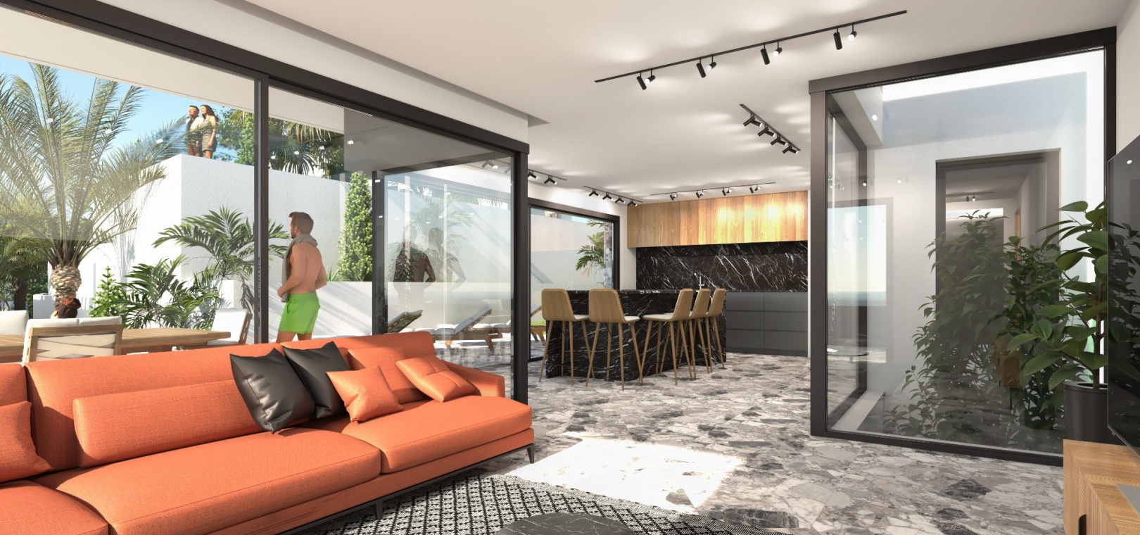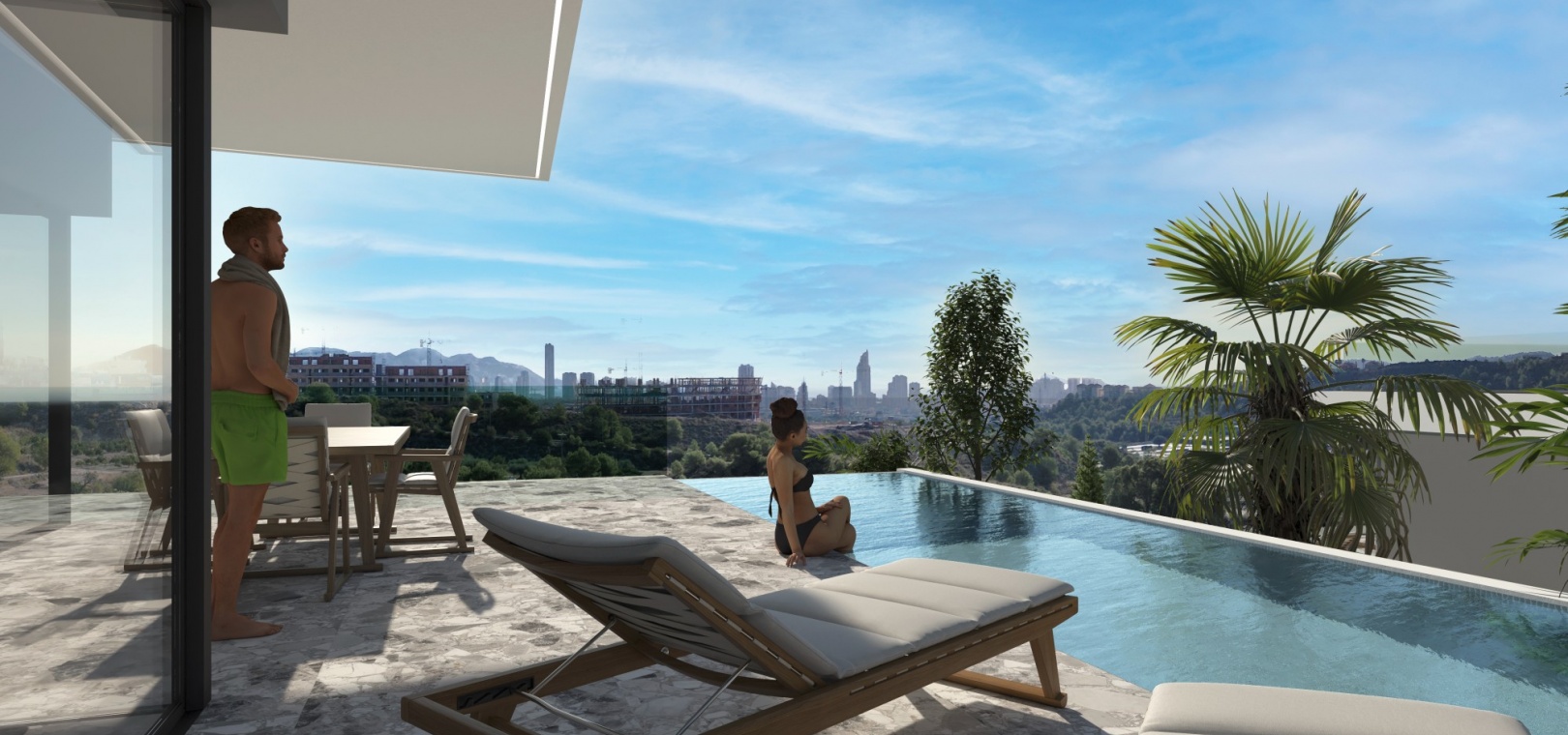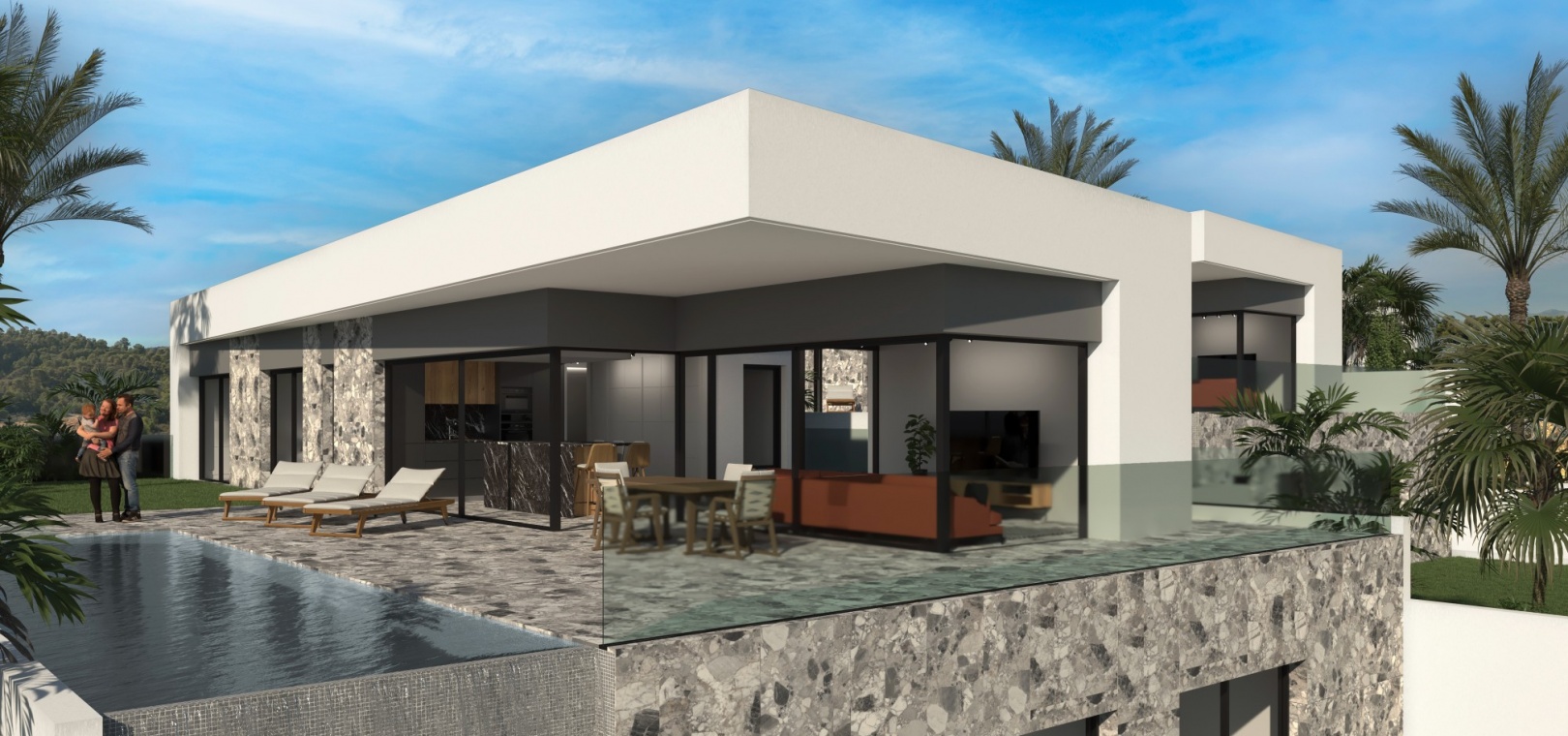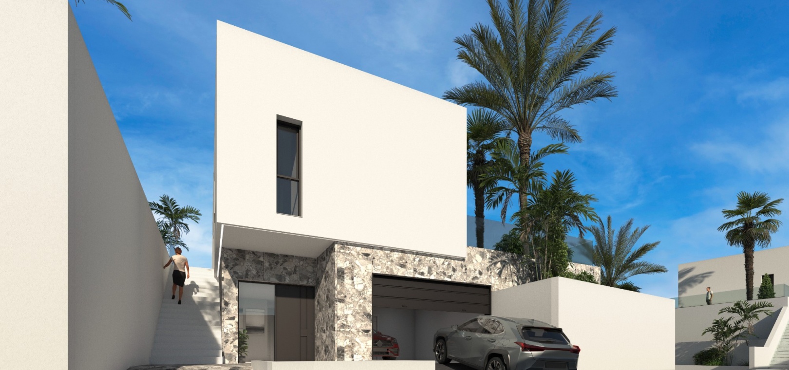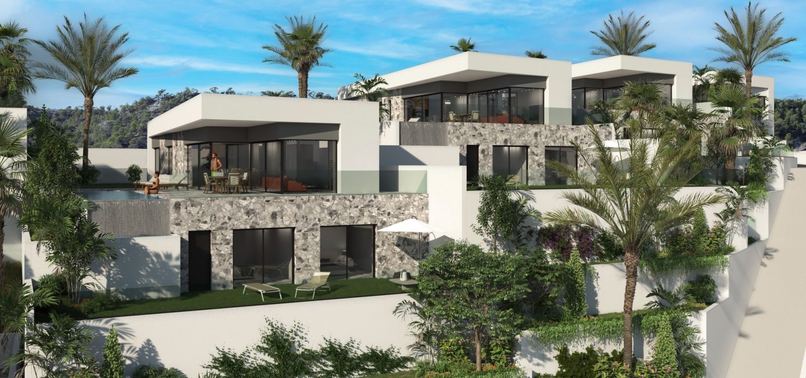Er zijn 5 percelen beschikbaar en elke woning beschikt over een eigen overloopzwembad, moderne keuken met inbouwapparatuur, LED-verlichting, warm/koud airconditioning, wasruimte, lift, bioscoopzaal en garage voor 2 auto's.