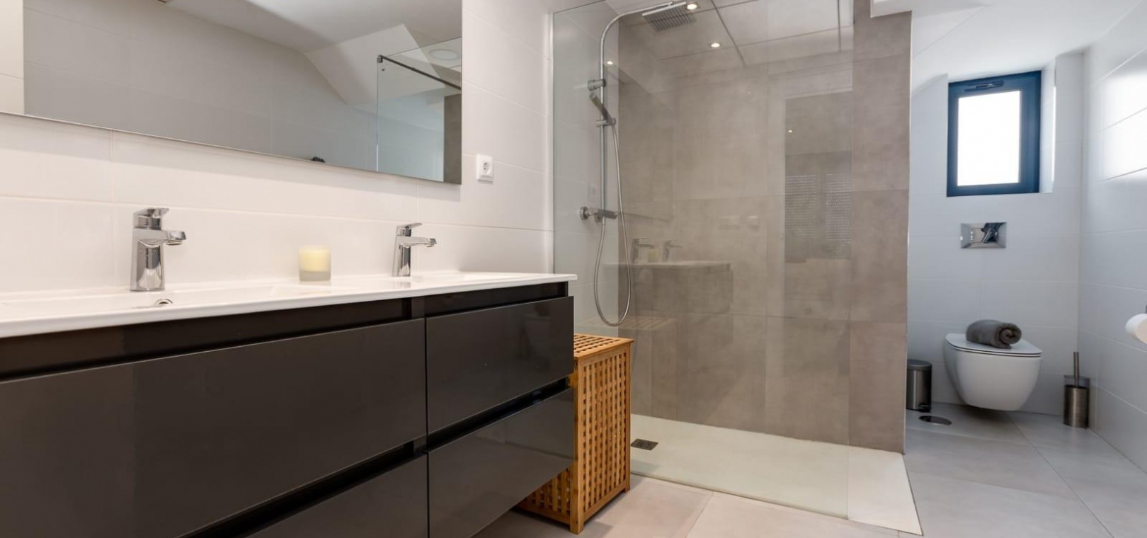 De villa heeft een ruime woon-eetkeuken, 3 slaapkamers, 2 badkamers (waarvan één en suite), een garage op het perceel, een privé tuin van ongeveer 100m2, terrassen.