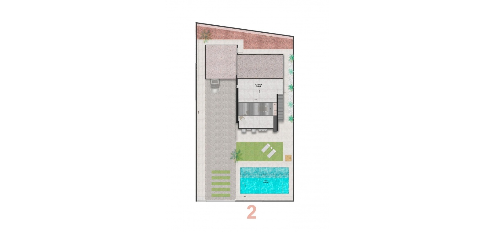 Een select handtekening stijl ontwikkeling - JUIST 3 een niveau hedendaagse villa's - Alle genieten van royale perceel maten, dubbele garage, prive zwembad en dak solarium.