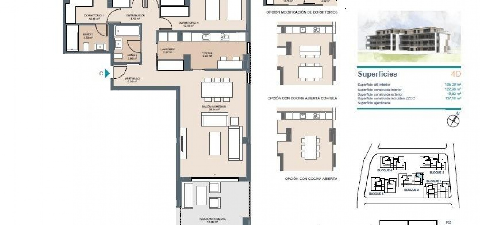 Nieuwbouw wooncomplex bestaat uit 5 gebouwen met 20 appartementen met 2, 3 en 4 slaapkamers, 2 badkamers, open keuken met ruime woonkamer, inbouwkasten, terras.