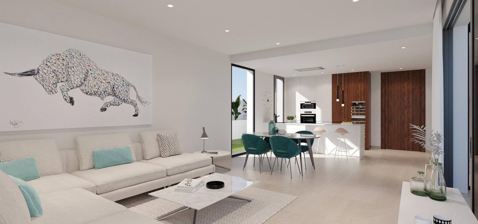 Elke villa in dit nieuwe project heeft 3 of 4 slaapkamers en 3 luxe badkamers, waardoor er voldoende ruimte is voor zowel familie als gasten. Het hart van deze huizen is de open woon- en eetruimte, verbonden met een strakke, geïntegreerde keuken. Deze veelzijdige ruimte is perfect voor familiebijeenkomsten en entertainment en biedt een gezellige maar eigentijdse sfeer. Sommige wooneenheden hebben ook een kelderverdieping die kan worden aangepast tot een fitnessruimte, thuisbioscoop of recreatieruimte.