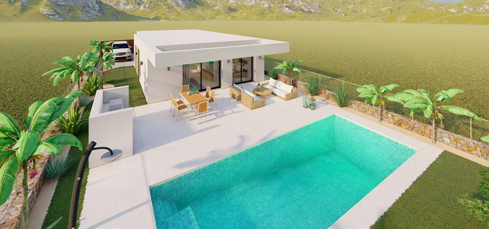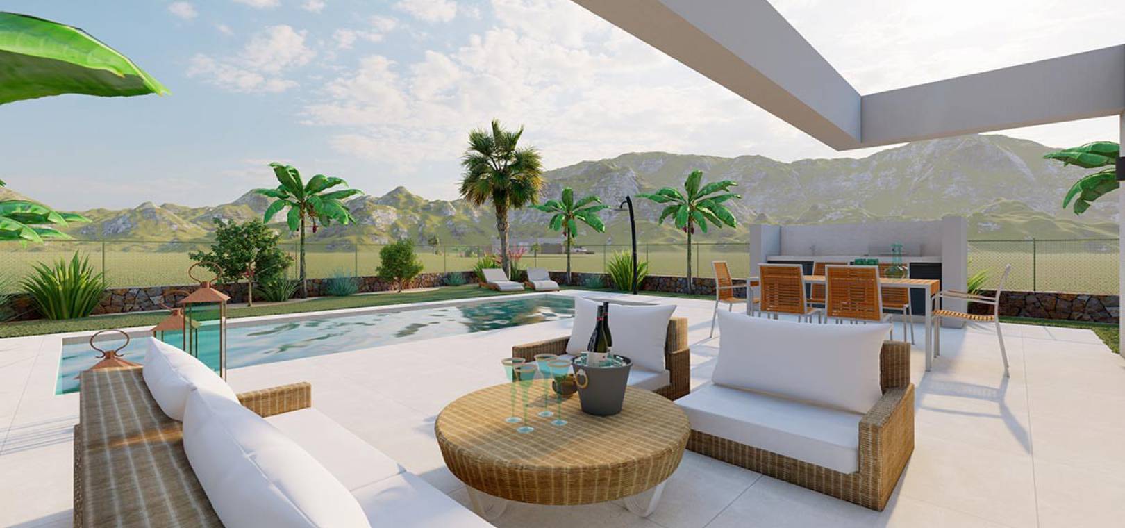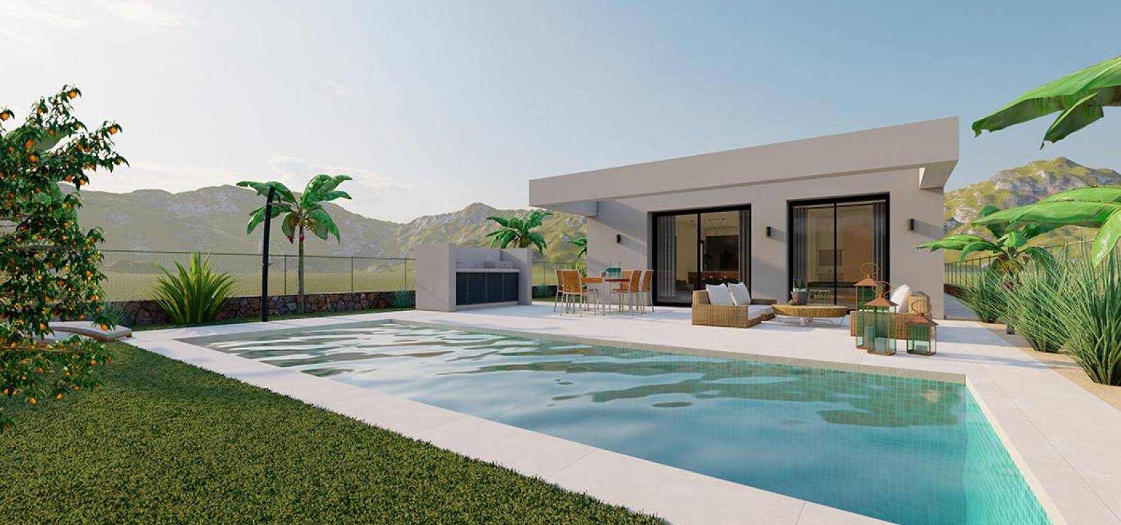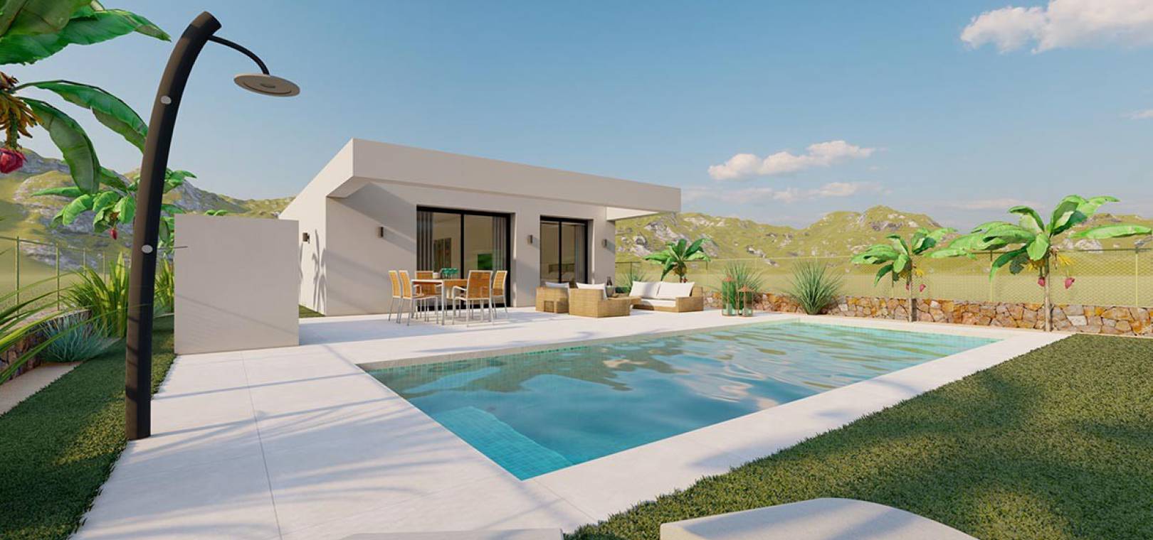 These high quality modern 3 bedroom, 2 bathroom detached villas with private pools are built all on one level situated in Los Montesinos a short walk from bars, shops and restaurants. Included with this villa is an 8 x 3 metre private pool, hot/cold air conditioning, modern kitchen with fitted appliances and all inside and outside lighting.