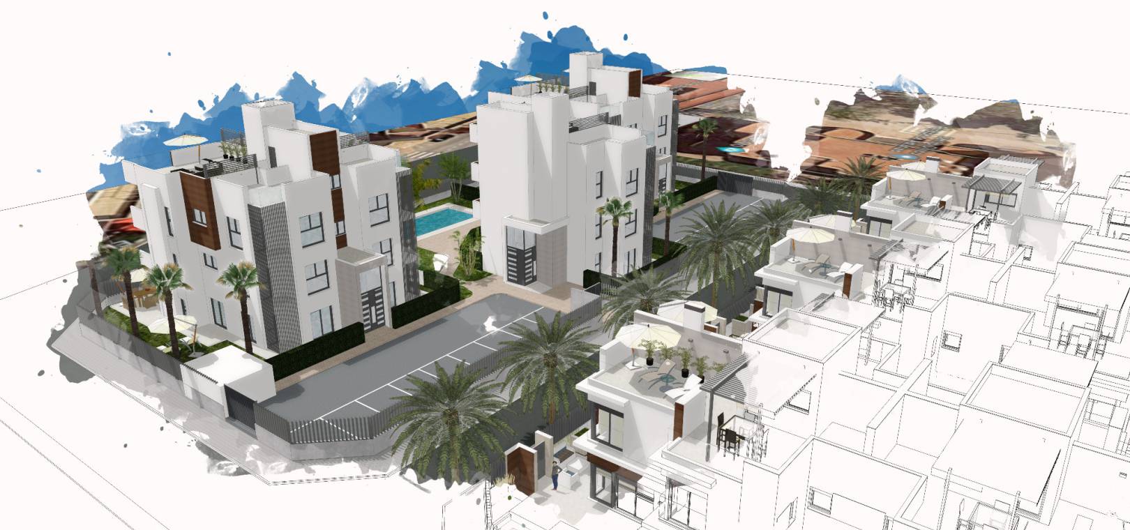 New build ultra modern design 3 bedroom, 2 bathroom apartments located in Res. Barnuevo, Santiago de la Ribera, Mar Menor, Murcia.
