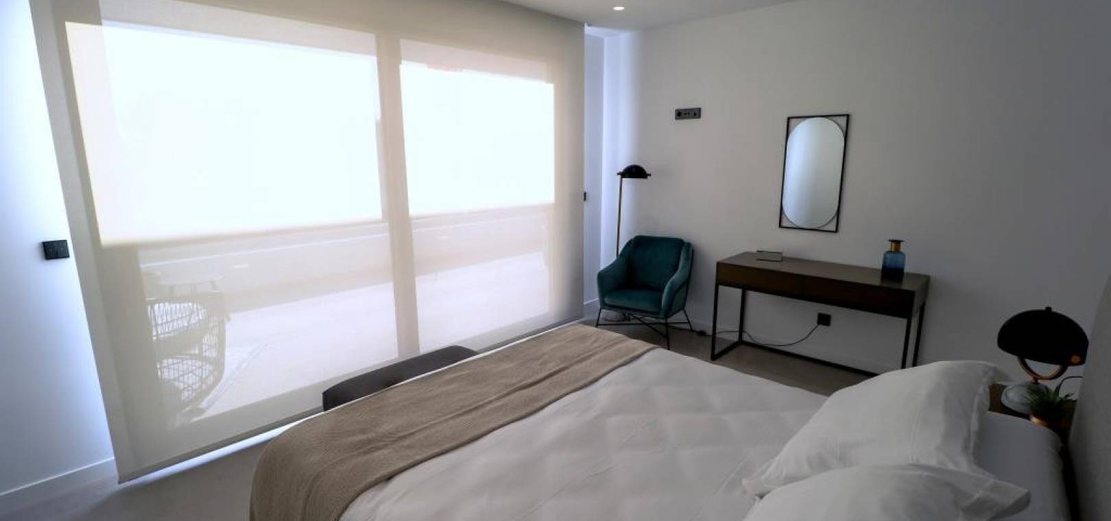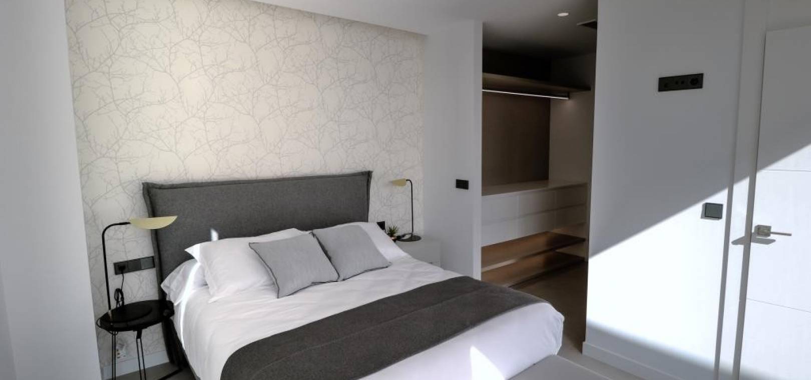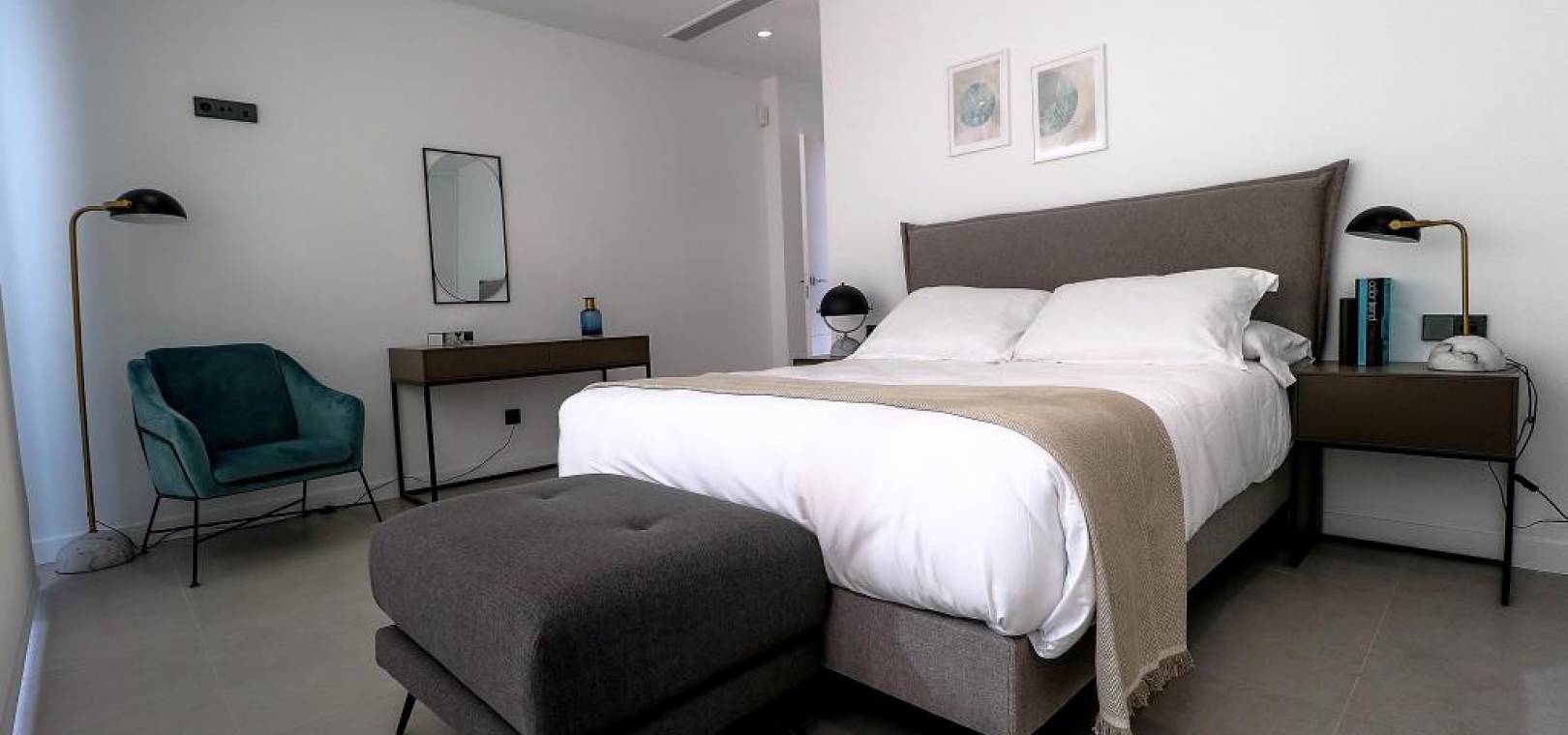 On the first floor there is a master bedroom with dressing room and en-suite, a further large bedroom with fitted wardrobes and en-suite bathroom and each bedroom has access to the large upper wrap around sun terrace. There is a staircase which leads up to an optional rooftop solarium which enjoys spectacular views and all day sun.